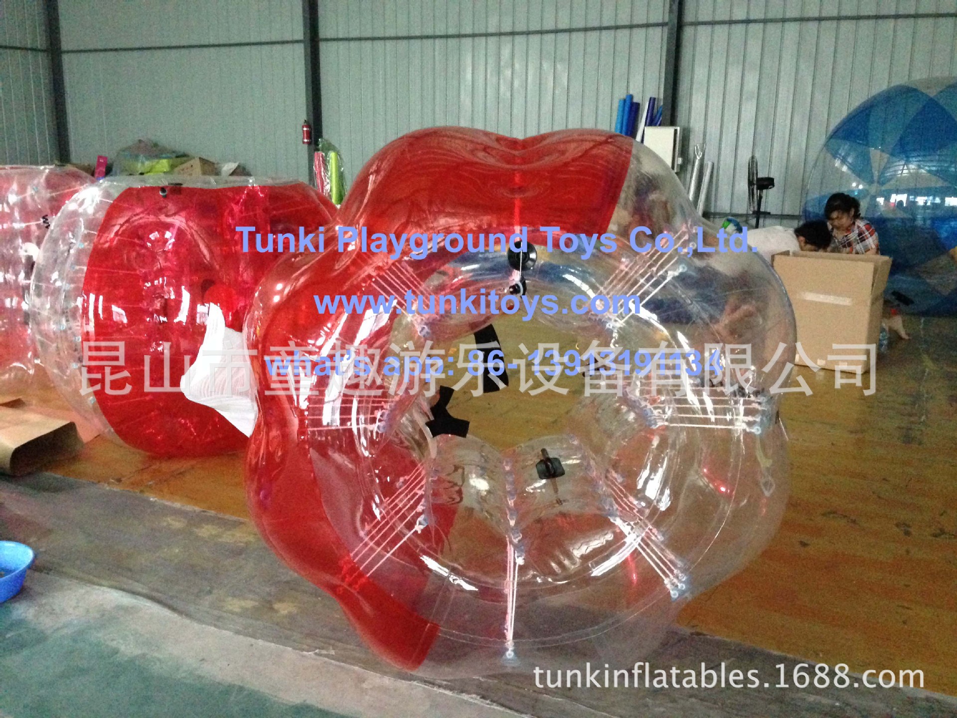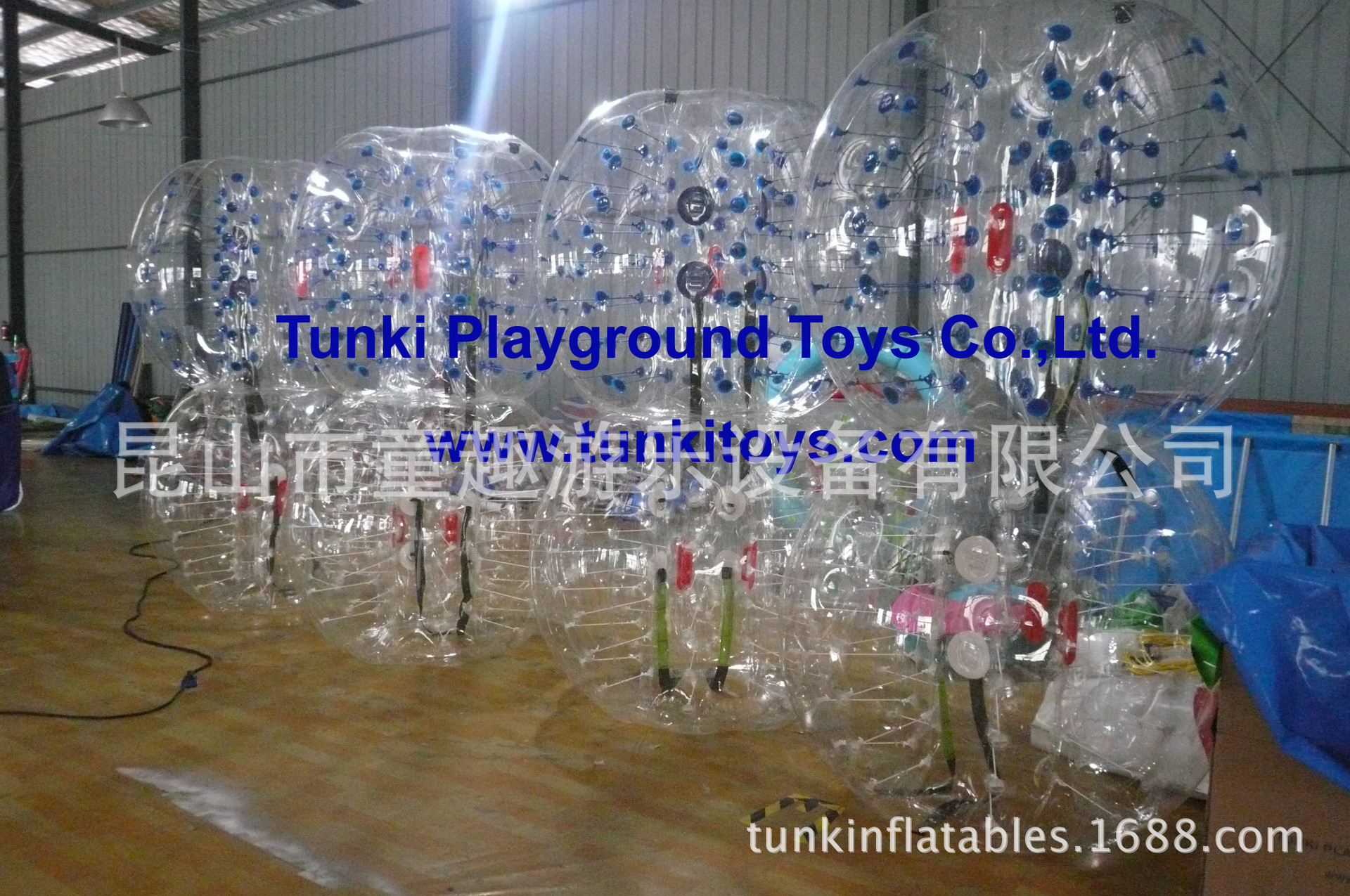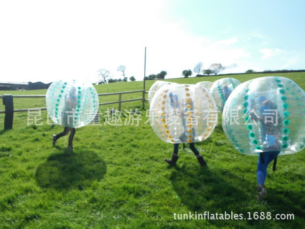 最新娛樂產品——碰碰球,由充氣氣囊組成,空氣流通,經久耐用,好玩刺激,安全可靠,運動時時間不受限製。適合成人,兒童玩耍,或單位組織群體娛樂活動,競技活動等等