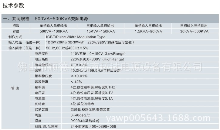 全國免費電話:400-0898-068。佛山市順德區蘇南環試電源設備有限公司是變頻電源、耐壓測試機、接地電阻測試機、安規綜合測試機、穩壓電源及調壓器等產品專業生產加工的公司,擁有完整、科學的質量管理體系。佛山市順德區蘇南環試電源設備有限公司的誠信、實力和產品質量獲得業界的認可。歡迎各界朋友蒞臨參觀、指導和業務洽談。 變頻電源:http://www.fssnpower.com 變頻電源: http://www.fssnpower.cn 變頻電源: http://www.sdsnpower.com 變頻電源: http://www.60hz-power.com 變頻電源: https://power13500289169.1688.com 變頻電源: https://andypower1.1688.com 變頻電源: https://yawp005643.1688.com 變頻電源:http://www.sunan17.com 變頻電源:http://www.sunan17.com.cn 變頻電源:http://www.ahdy17.cn 變頻電源:http://www.andy-power.com 變頻電源:http://www.andy17.cn 歡迎來電: 工廠電話:0757-22201850/22381856 傳真:0757-22228752 手機:13500277875 聯系人:聶德成 全國免費查詢熱線:400--0898--068 ☆ 主要品牌: A.進口品牌: 美國:美國泰克,美國福祿克,美國安捷倫,美國雷泰,美國天馬思,美國西圖… 日本:日本強力,日本ANDES,日本新寶,日本橫河,日本菊水,日本共立,日本建伍,日本三豐… 臺灣:臺灣泰仕,臺灣衡欣,臺灣群特,臺灣得益,臺灣良東,臺灣七泰,臺灣固緯,臺灣路昌,臺灣三華,臺灣宇鋒,臺灣奇力速,臺灣技友,臺灣好幫手,臺灣奧斯達,臺灣先馳,臺灣陽光,臺灣益和,臺灣華源… 香港:香港CEM,香港希瑪,香港優利德… 其它:韓國森美特……