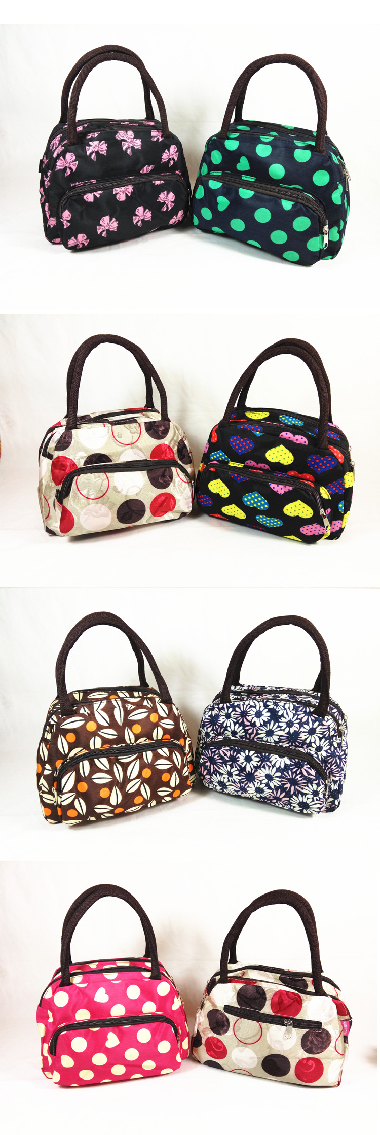 包包有三種佈料:牛津佈(厚實防水,佈紋細膩),帆佈(厚實防水,佈紋較粗糙),滌綸佈(防水,質感較輕柔細膩)