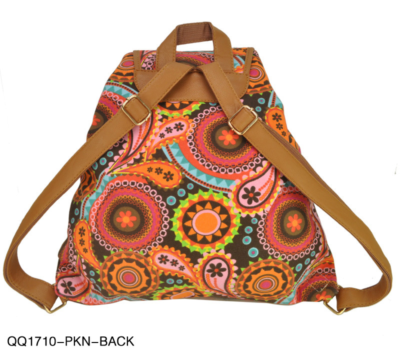 名稱 | 2013時尚女式潮流新款帆佈印花休閒PU雙肩女包 背包 |