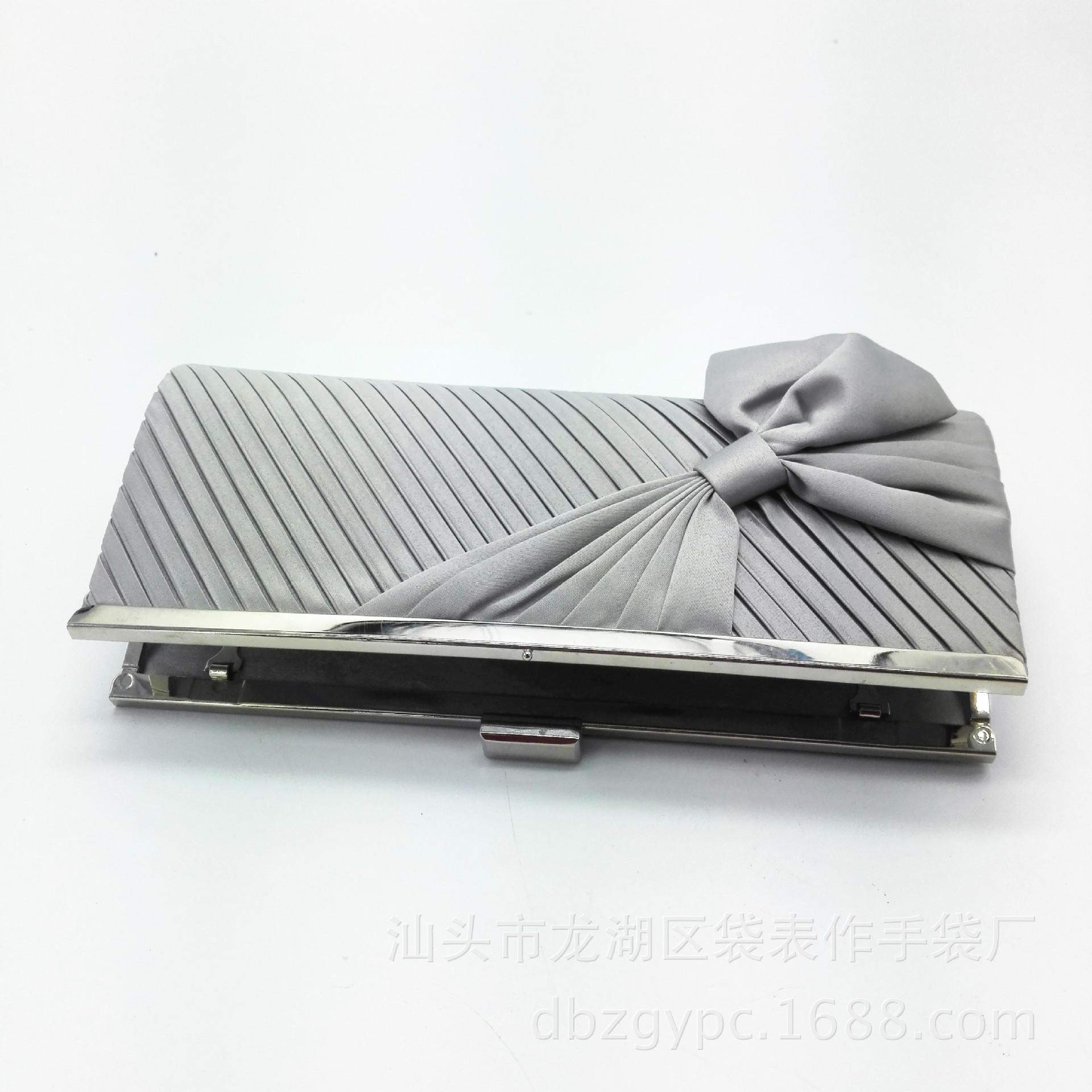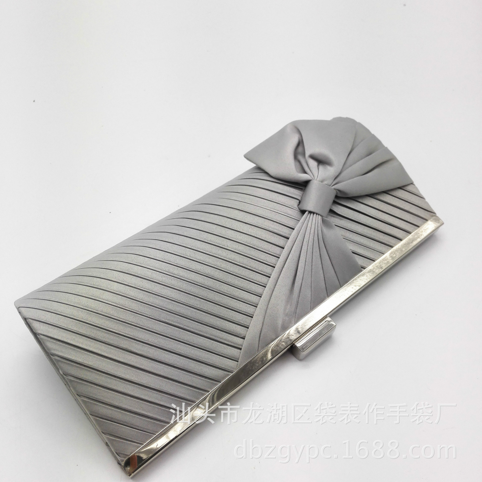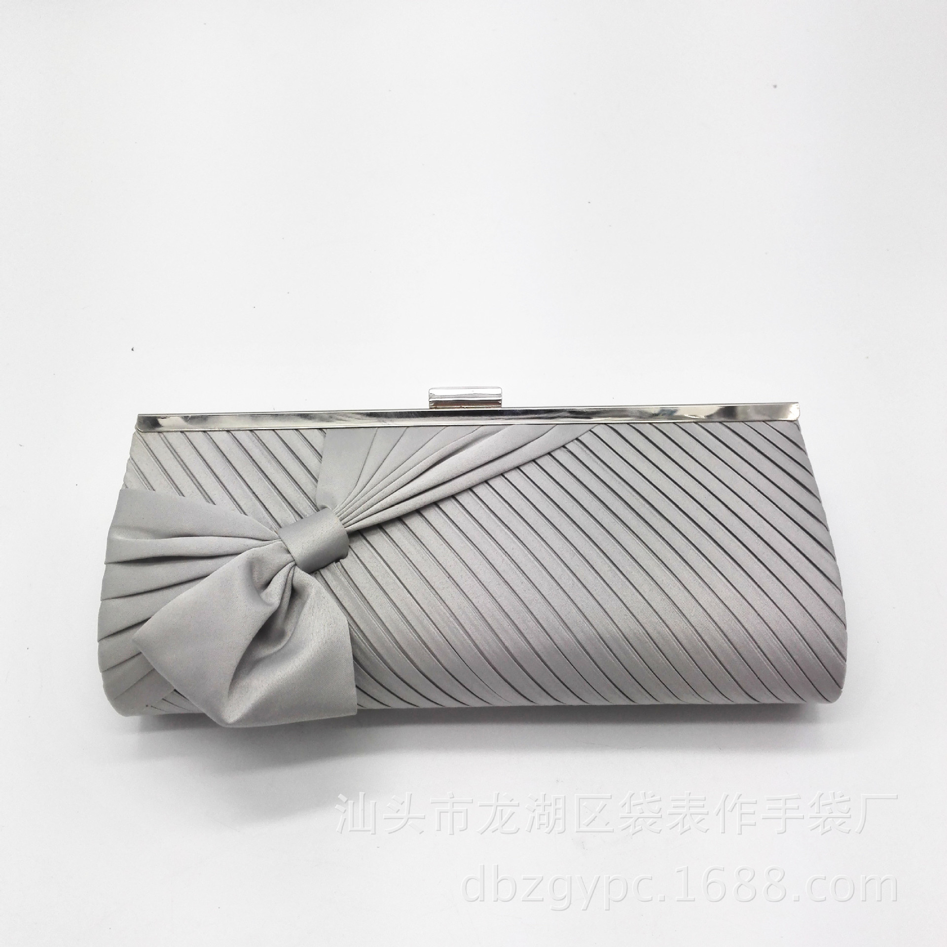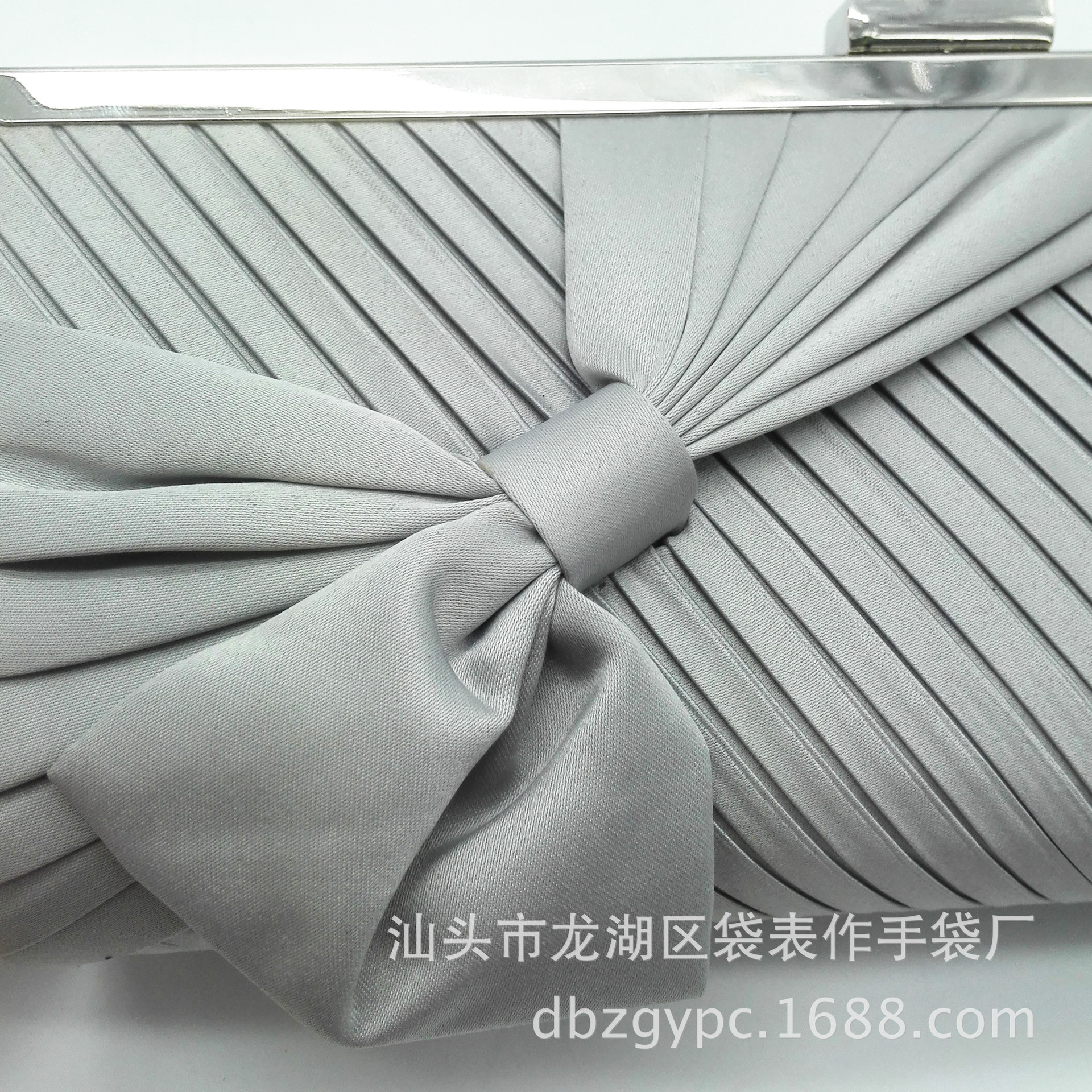 | 甜美淑女蝴蝶結鏈條晚宴包 | 23*10.5*5(CM) | 米蘭色丁佈 | 1.2米銀色萬字鏈 |