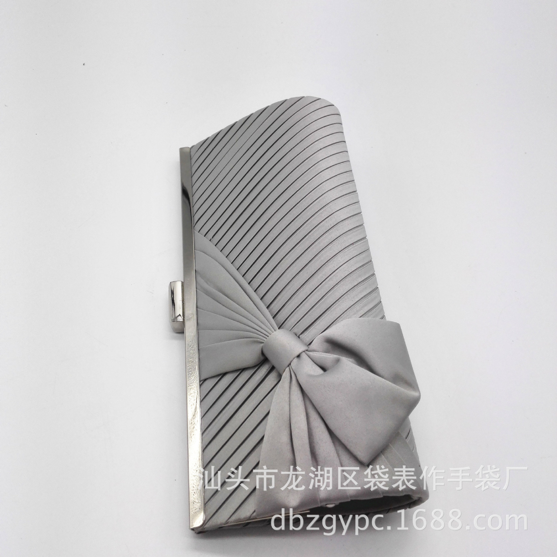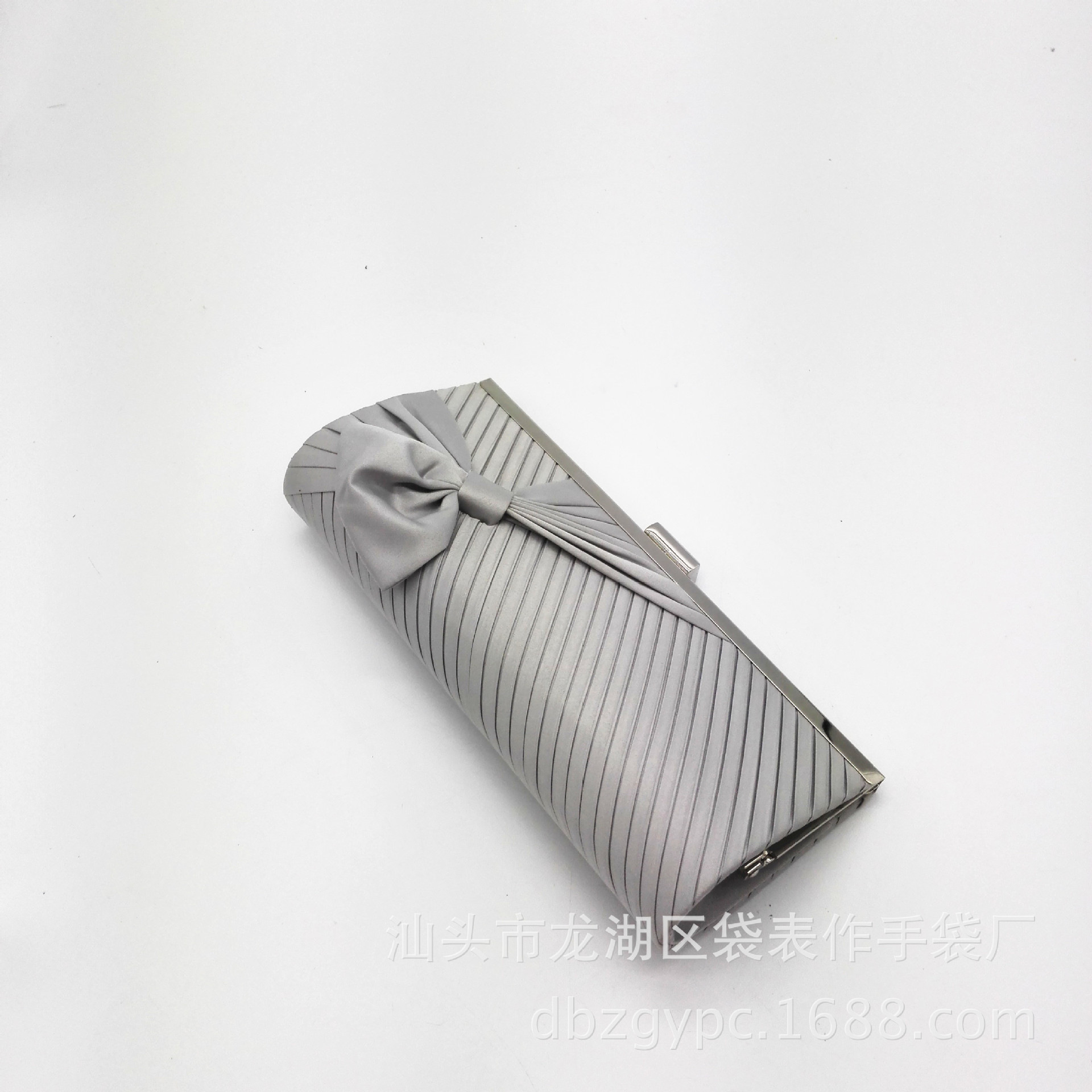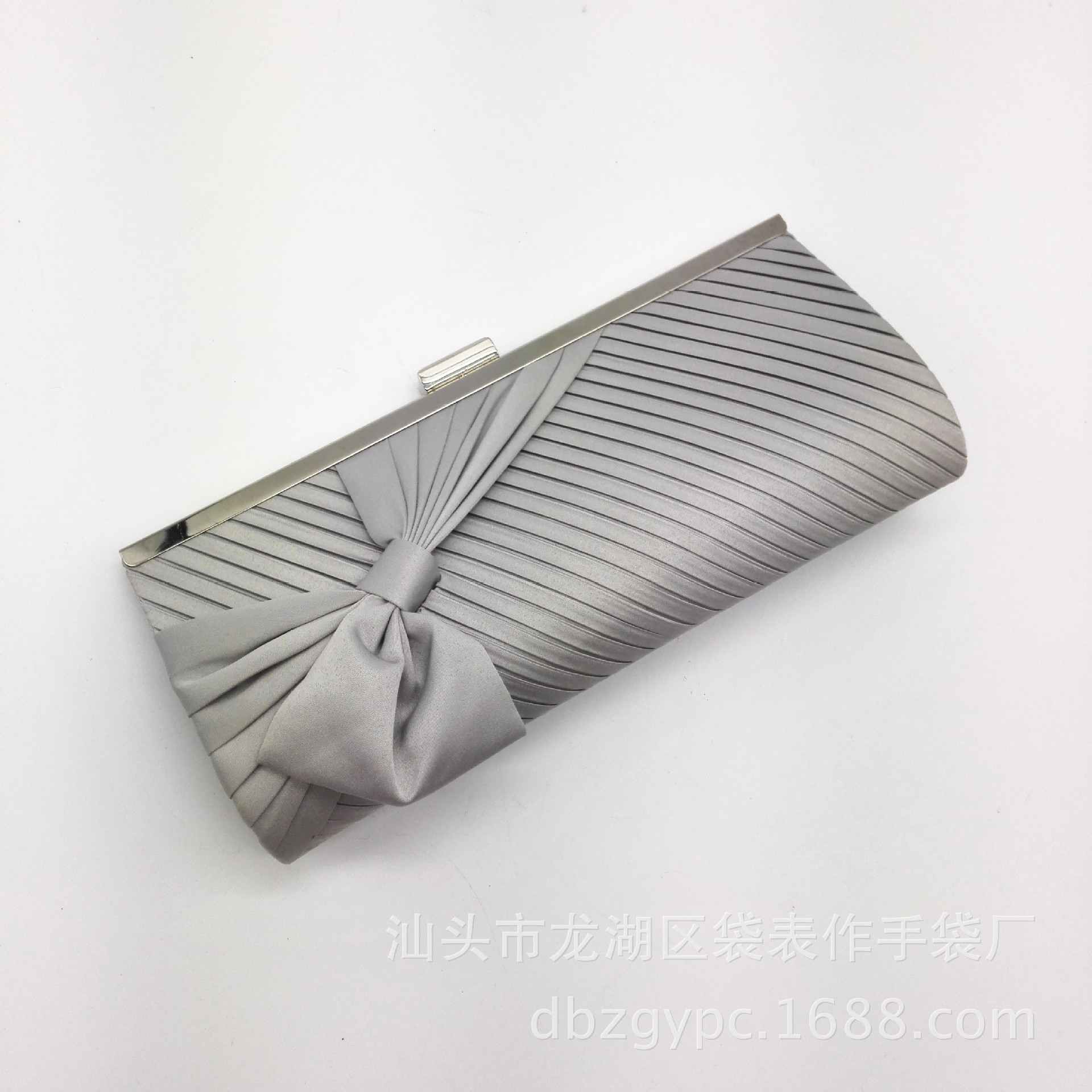 | 甜美淑女蝴蝶結鏈條晚宴包 | 23*10.5*5(CM) | 米蘭色丁佈 | 1.2米銀色萬字鏈 |