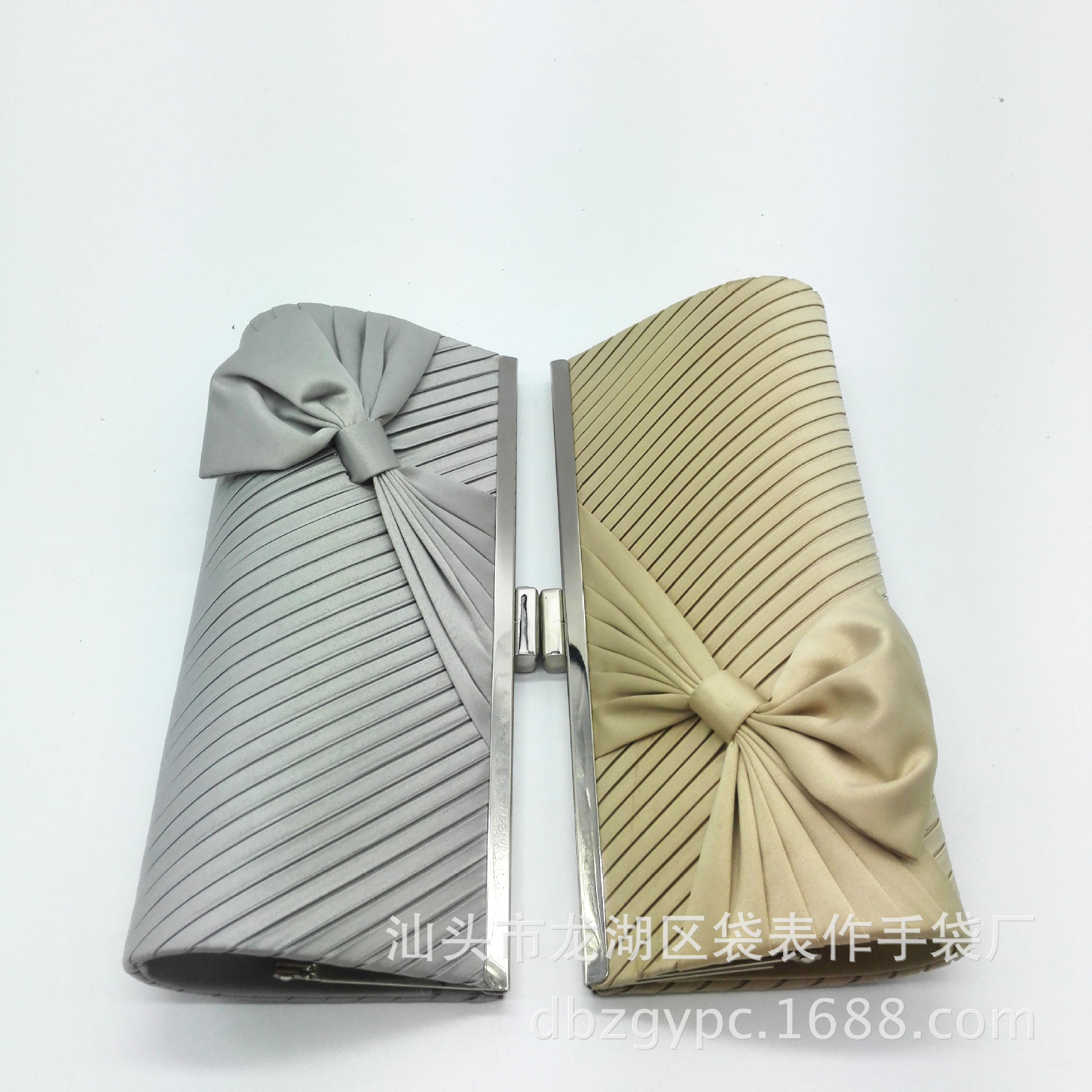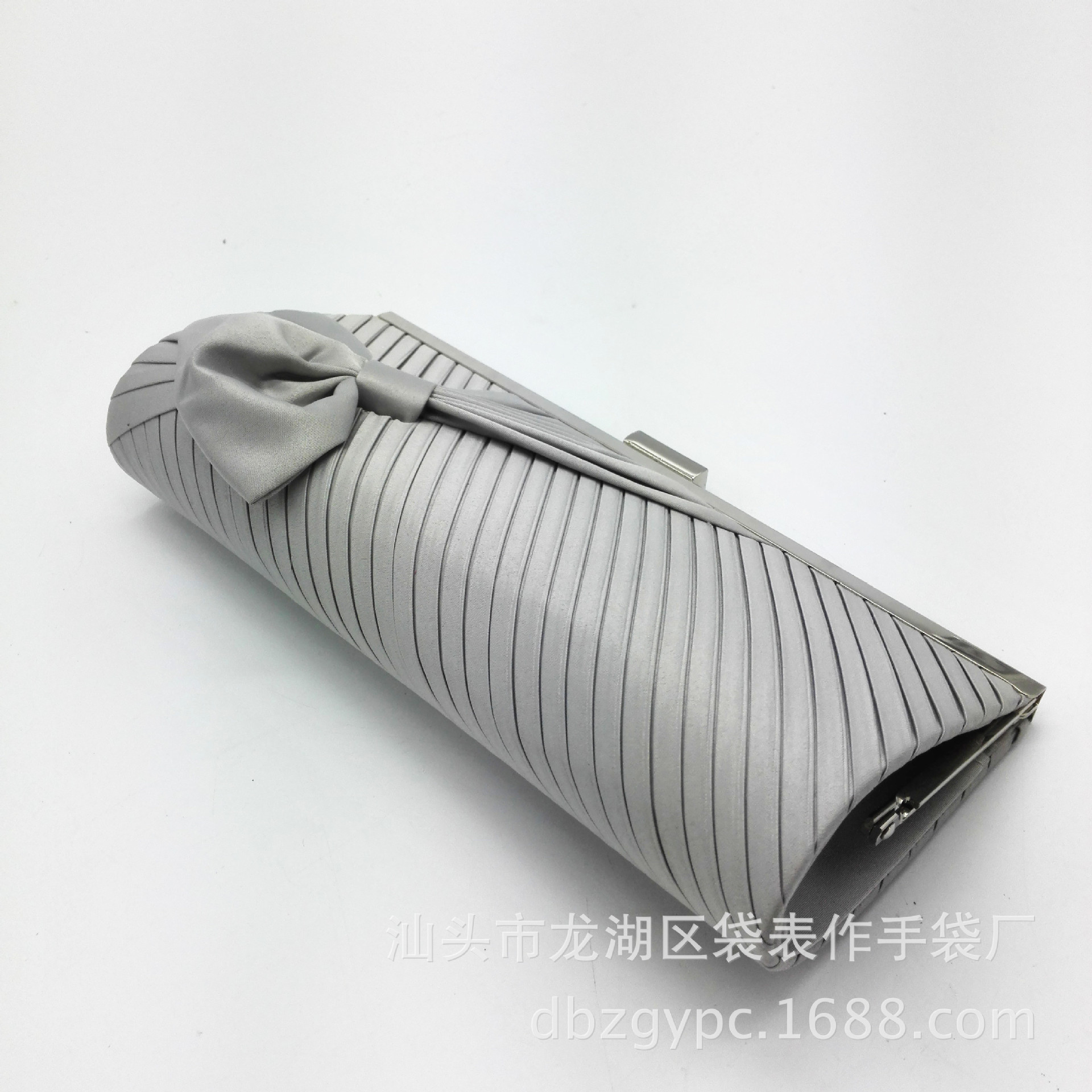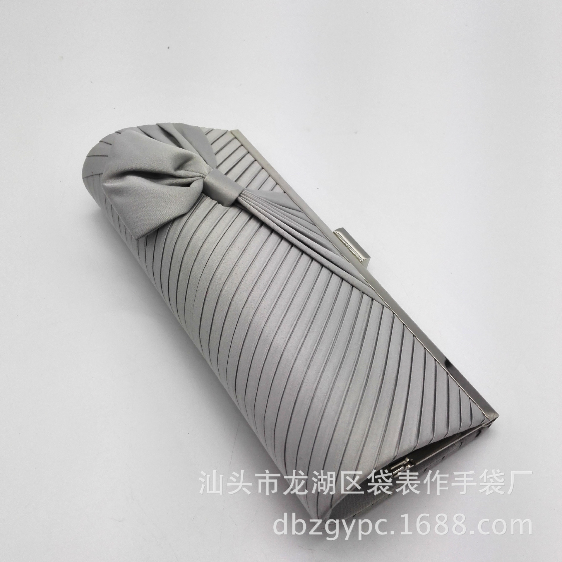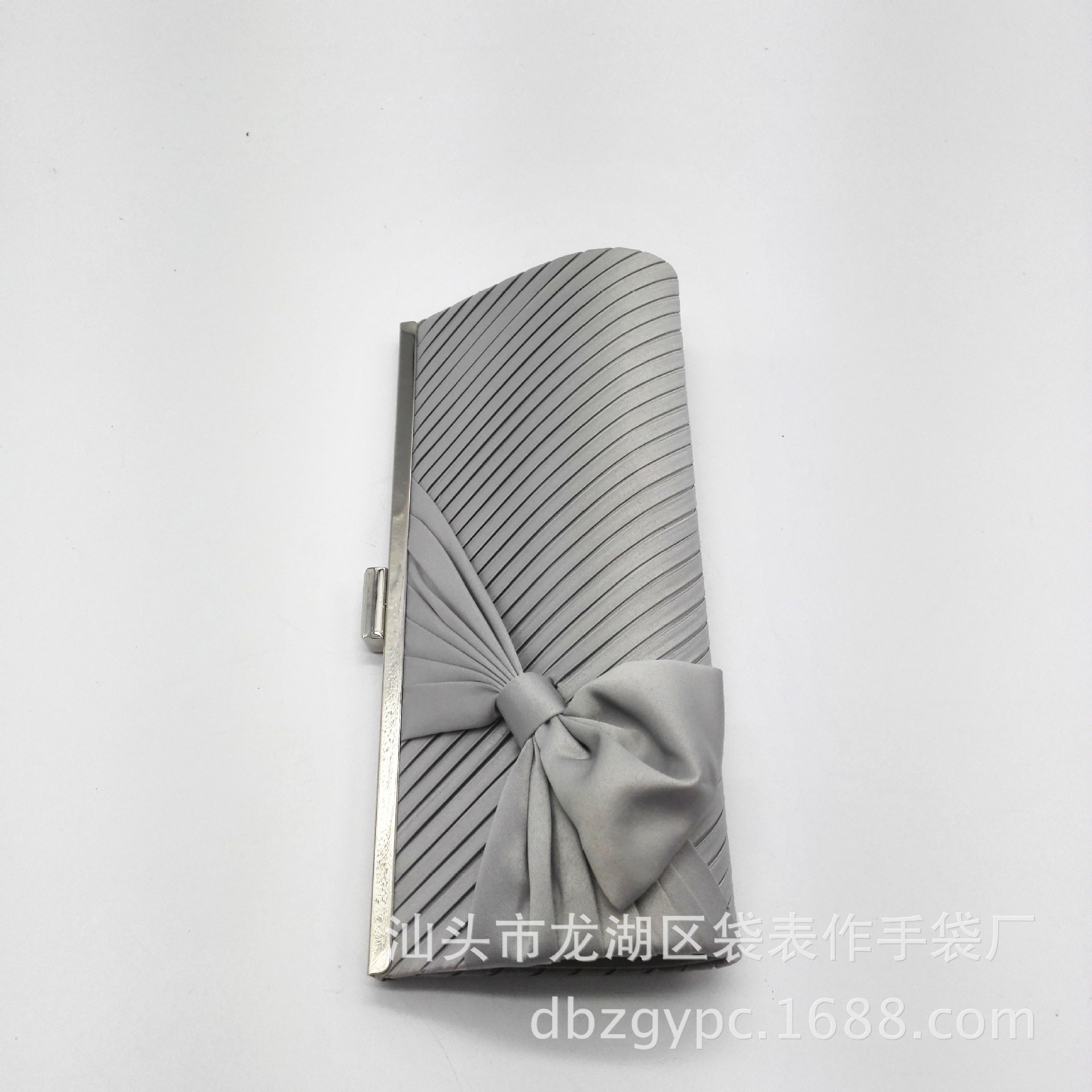 | 甜美淑女蝴蝶結鏈條晚宴包 | 23*10.5*5(CM) | 米蘭色丁佈 | 1.2米銀色萬字鏈 |