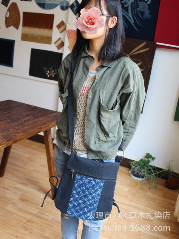 包包是出口日本的餘單,采用大麻草木染上色,天然草木染料,刺字拼接工藝,做工很精細的,非常樸實自然,日韓流行時尚斜挎包,帶可以調節,有兩個裡層,外層正麵和背麵都有個拉鏈暗包,很方便實用的。
