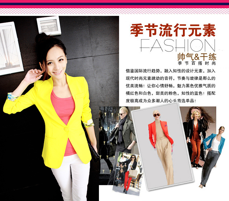 | 品名/Trade name | 2012秋裝新品糖果色女裝韓版OL修身春秋小西裝西服短外套C381 | ||||||||||||||||||||||||||||||||||||||||||