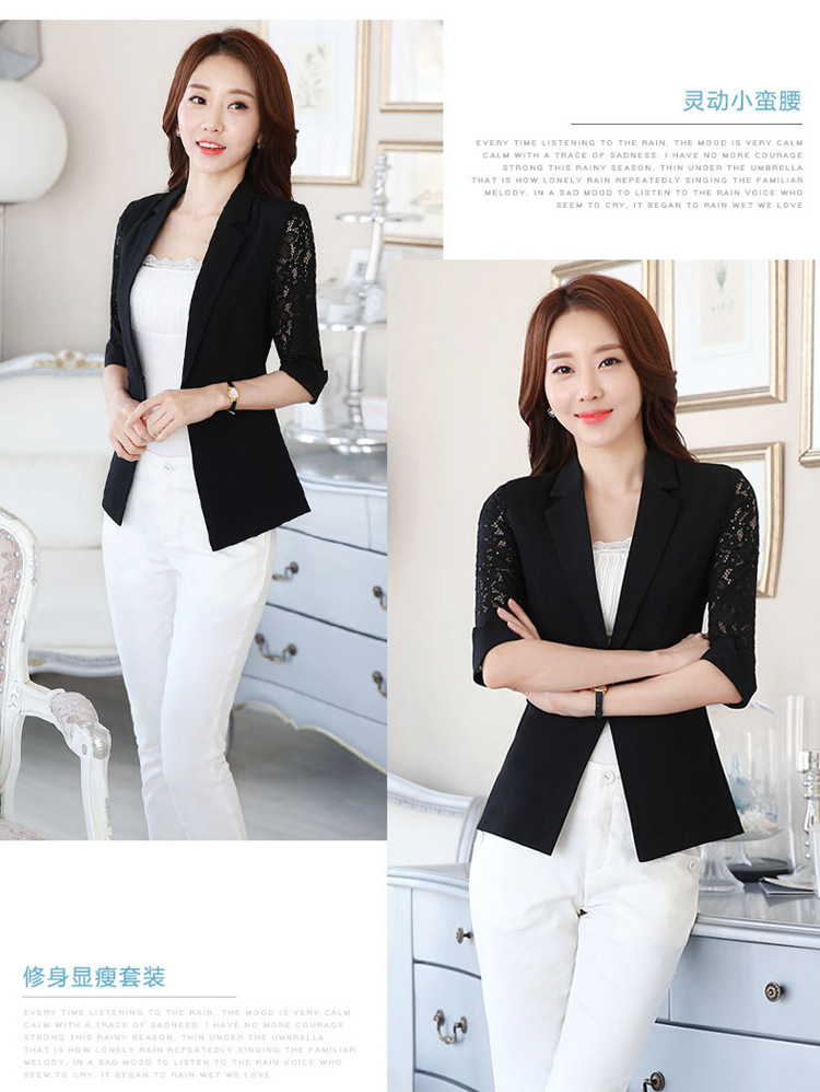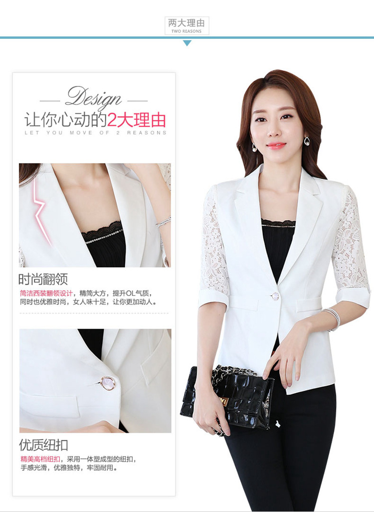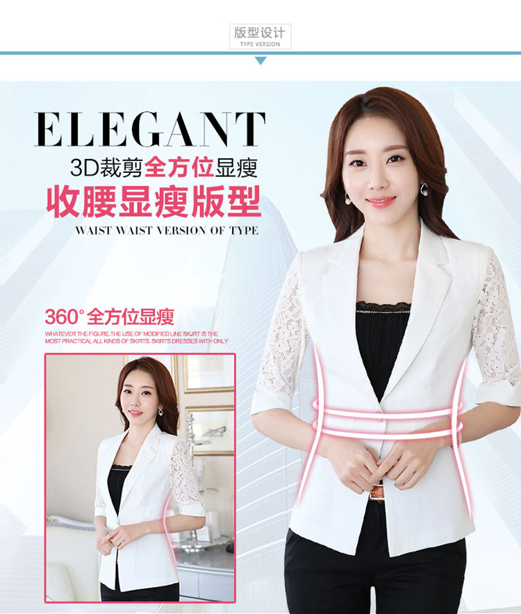 職業裝西裝外套工作服2016春季新款蕾絲袖百搭女裝外套廠傢批發