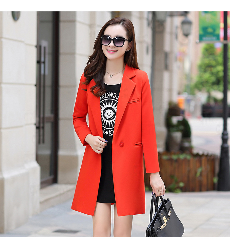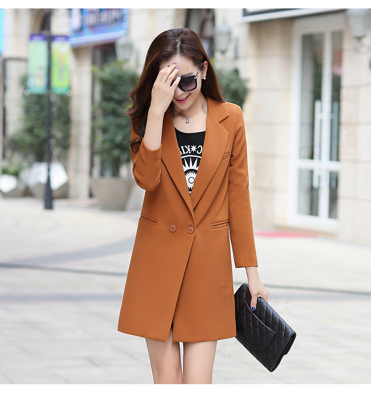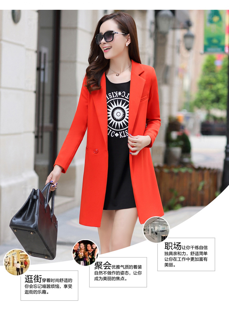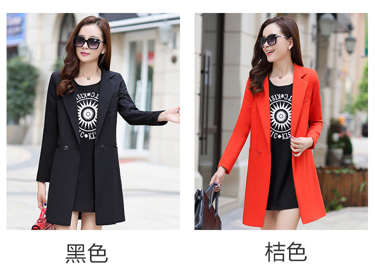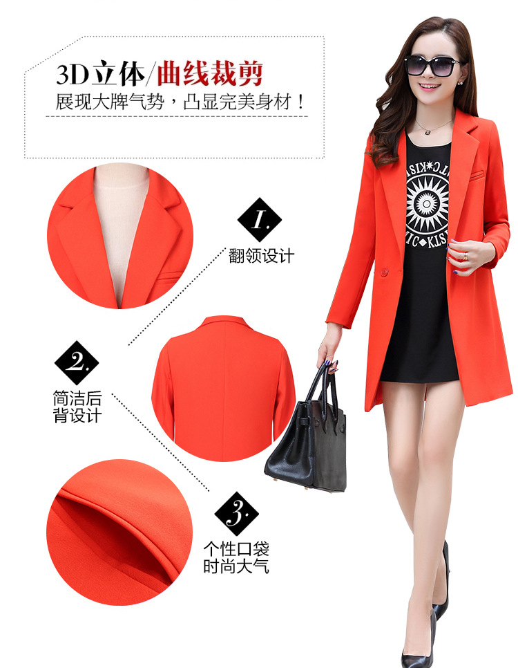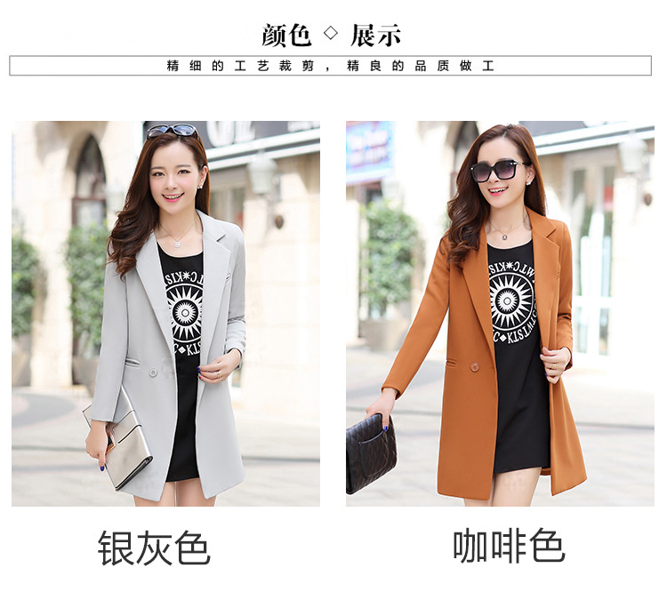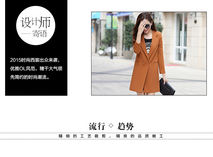 歐洲站2016新款秋裝中長款修身小西裝女長袖 時尚百搭針織小西服