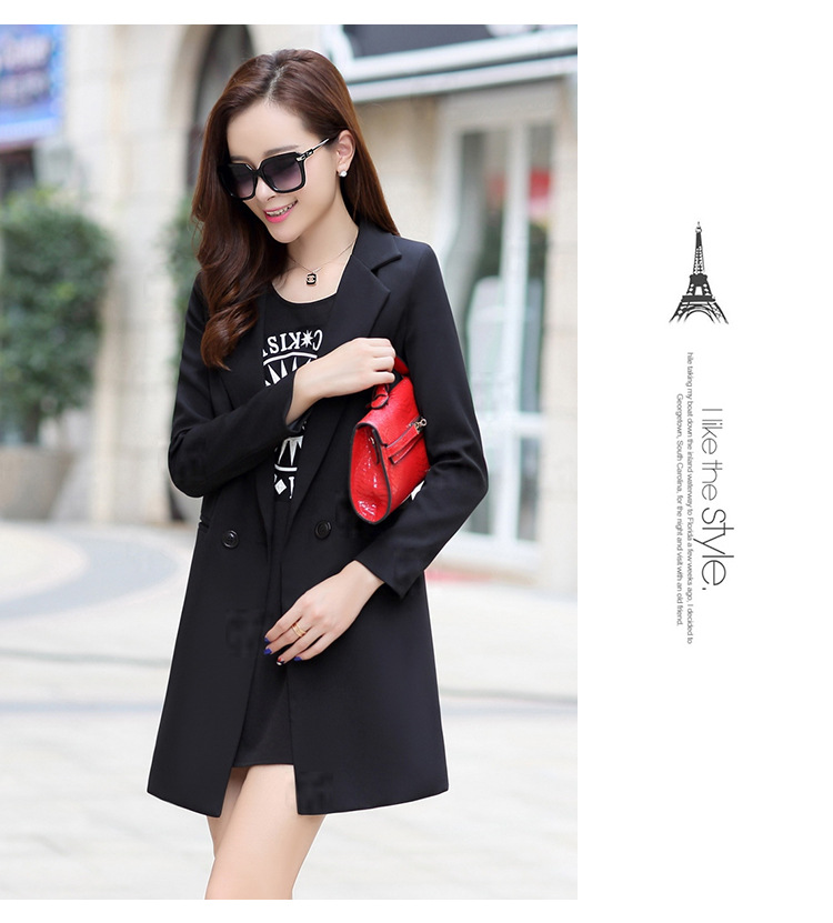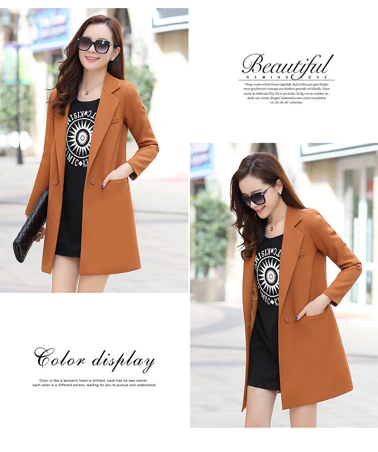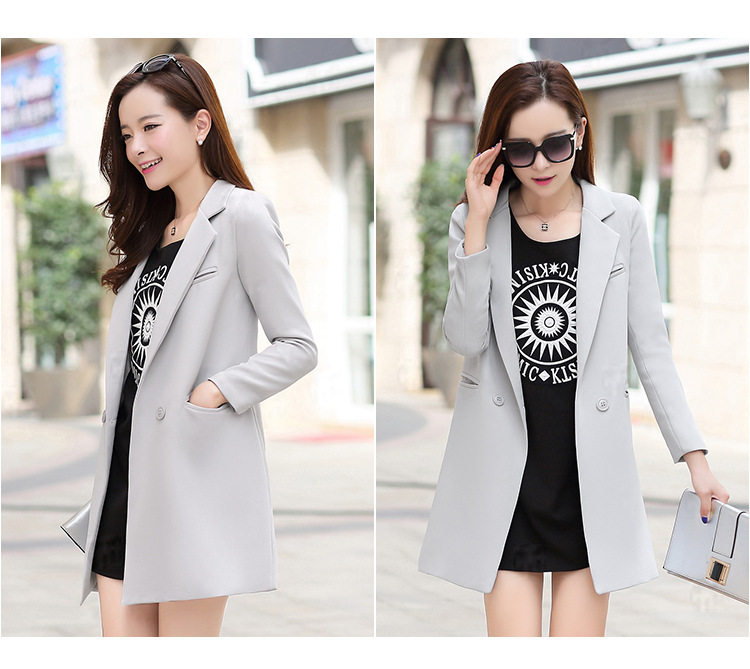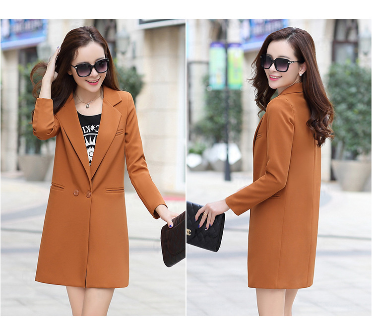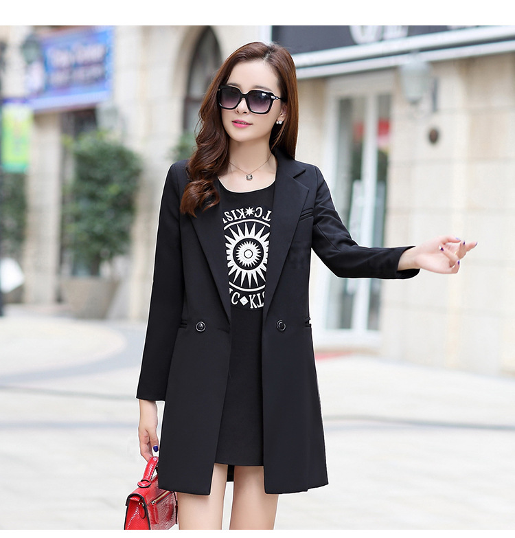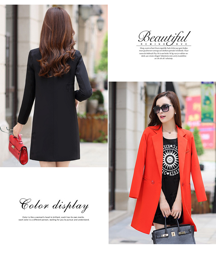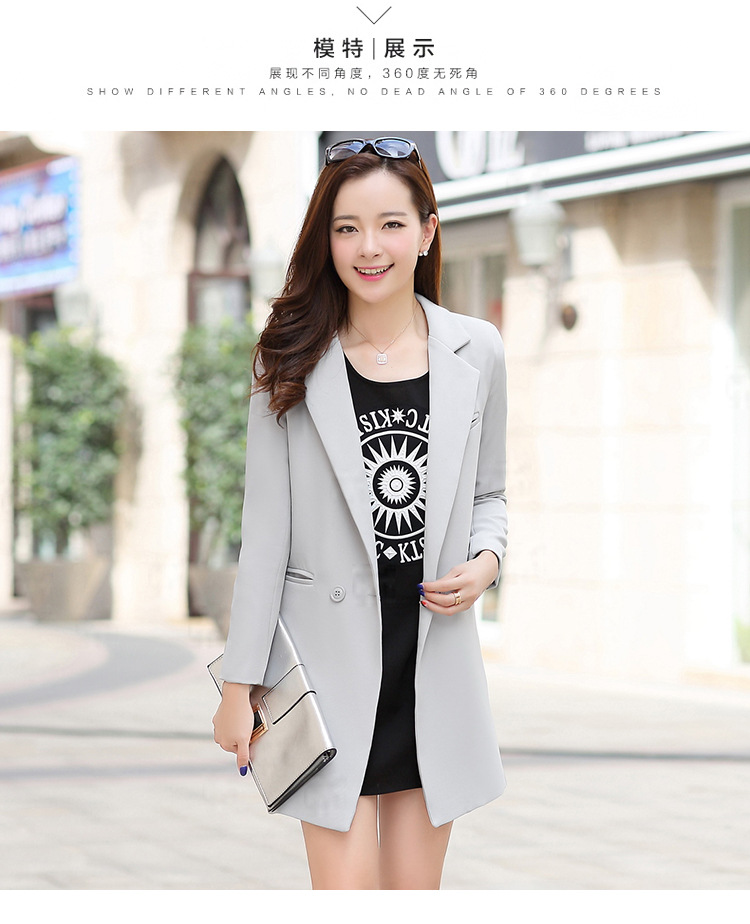 歐洲站2016新款秋裝中長款修身小西裝女長袖 時尚百搭針織小西服