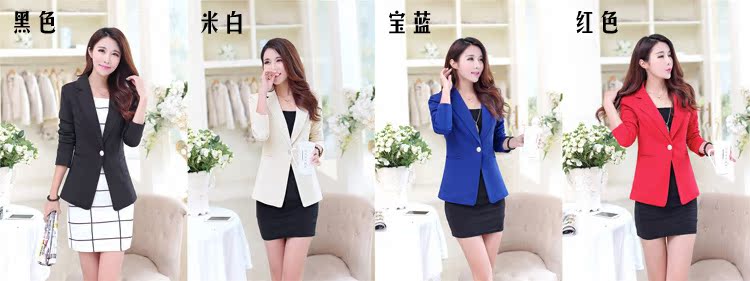 2016春季純色拼接小西裝女長袖修身顯瘦大碼OL小西服外套女批發