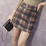 秋冬新款毛呢半身裙 韓版高腰修身格子包臀短裙 大碼女裝潮