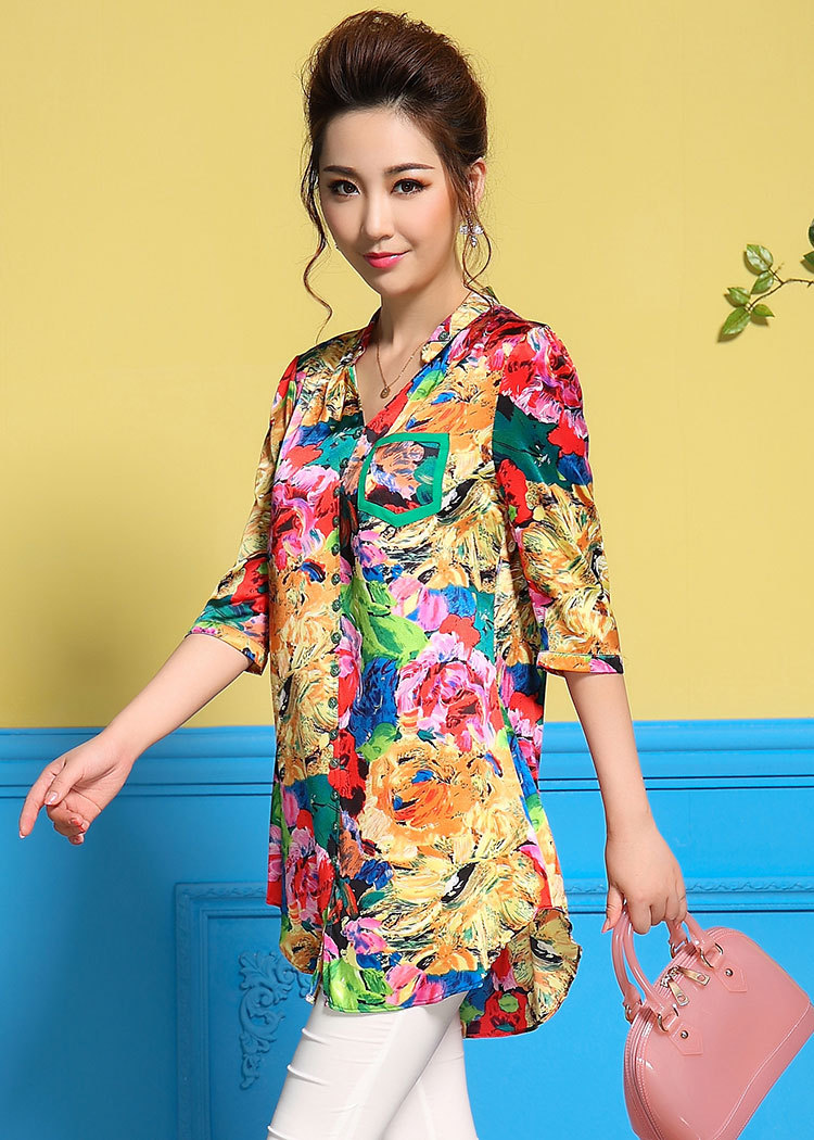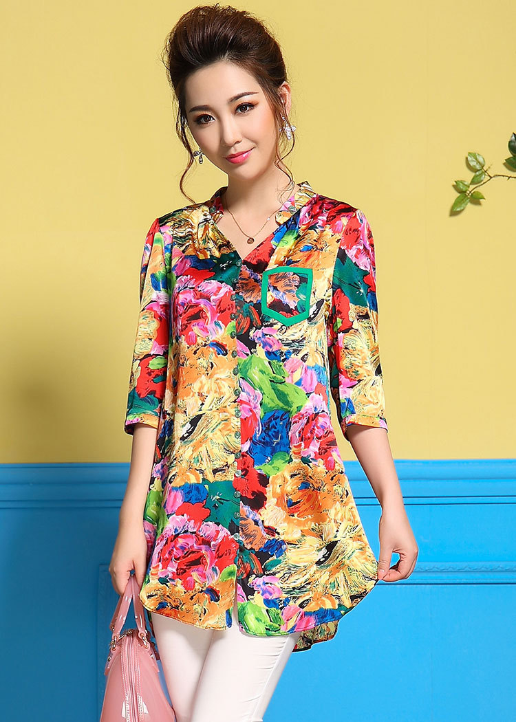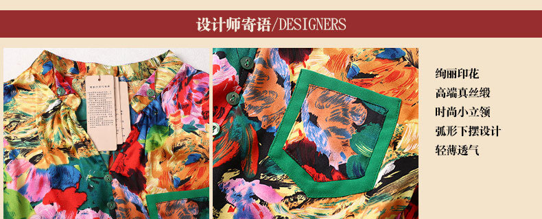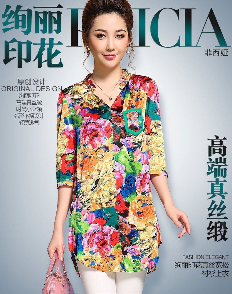 2016夏裝新款 大碼寬松女裝 真絲中長款印花襯衣真絲中年女裝