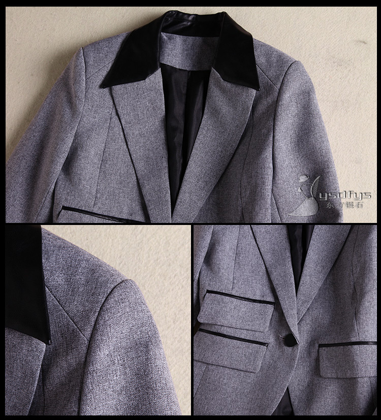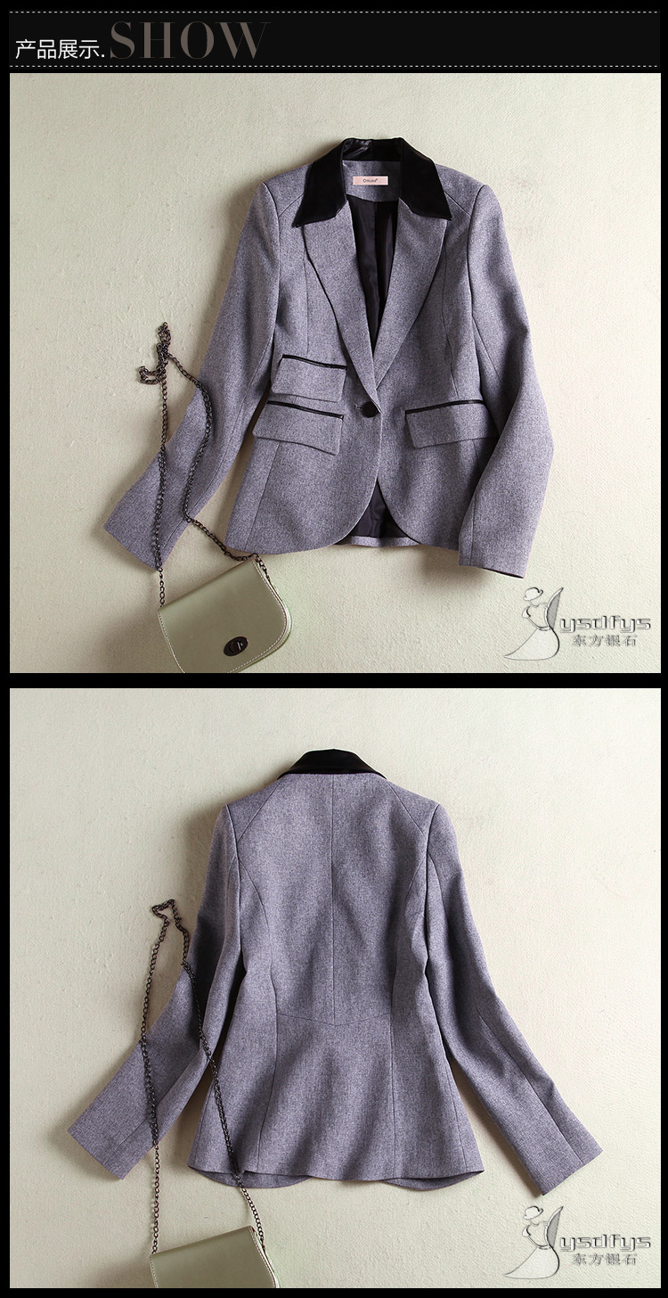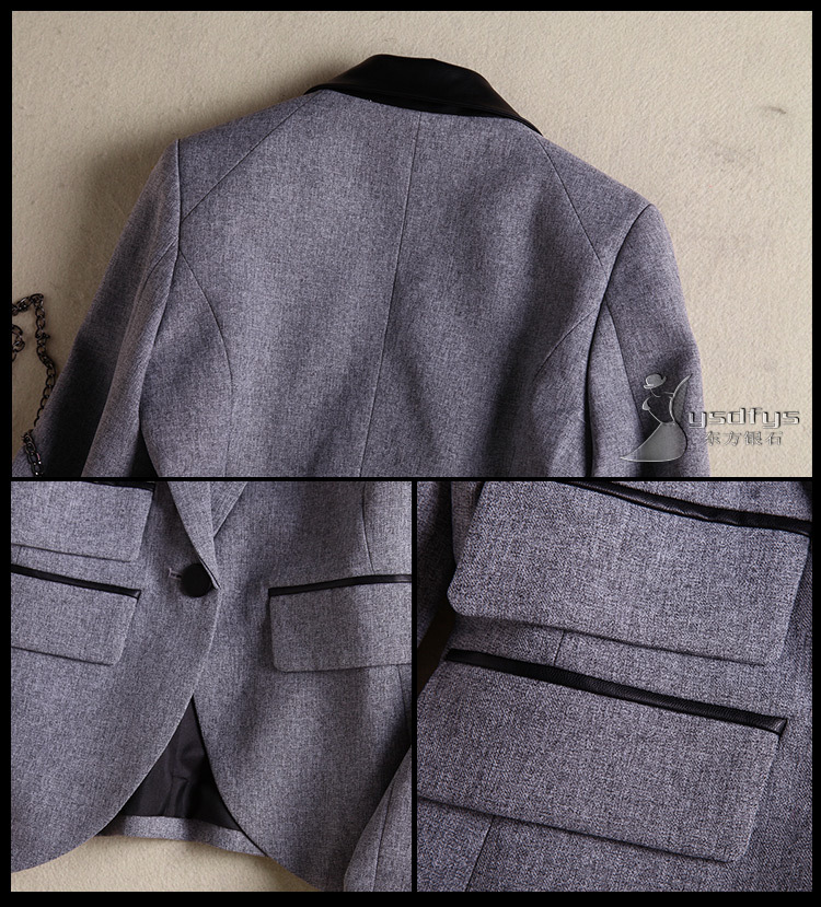 2015秋冬新款時尚歐美氣質OL皮領西裝外套長袖西裝領上衣女裝批發