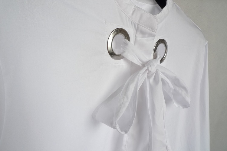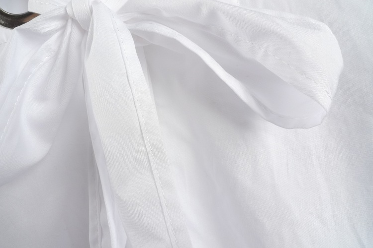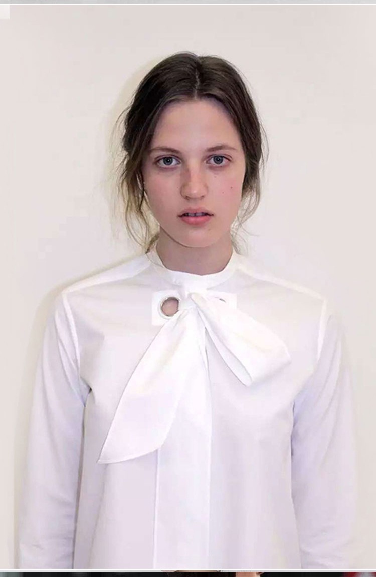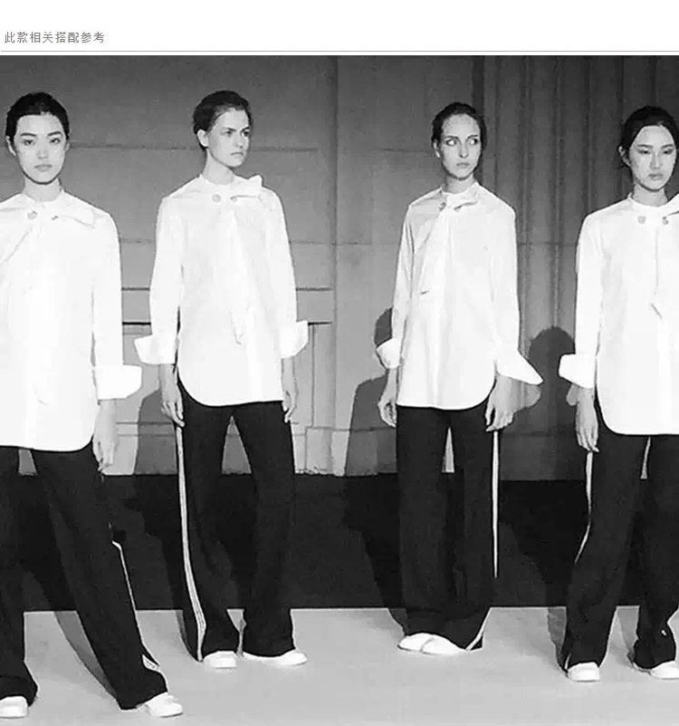 PS;在搭配中,這個領口系帶的白襯衫更女性化和復古,