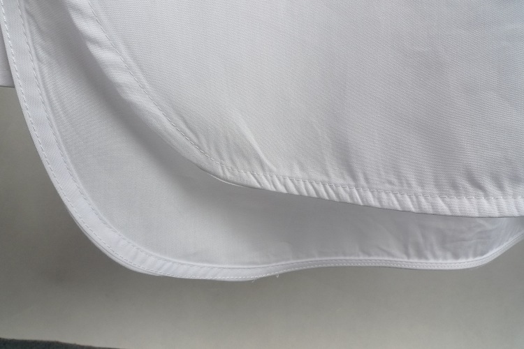 白色純棉麵料之上綴有金屬扣環及佈帶系結等特色細節,