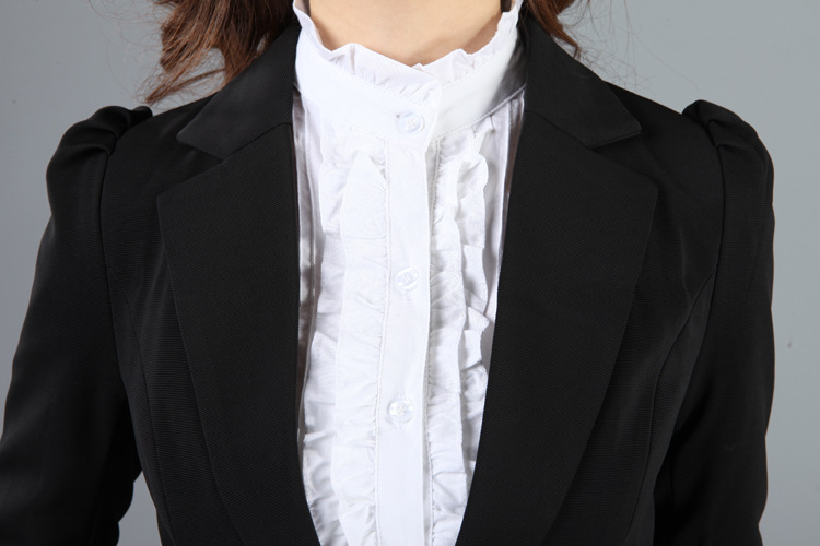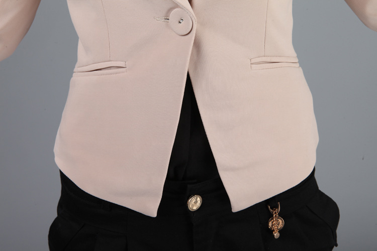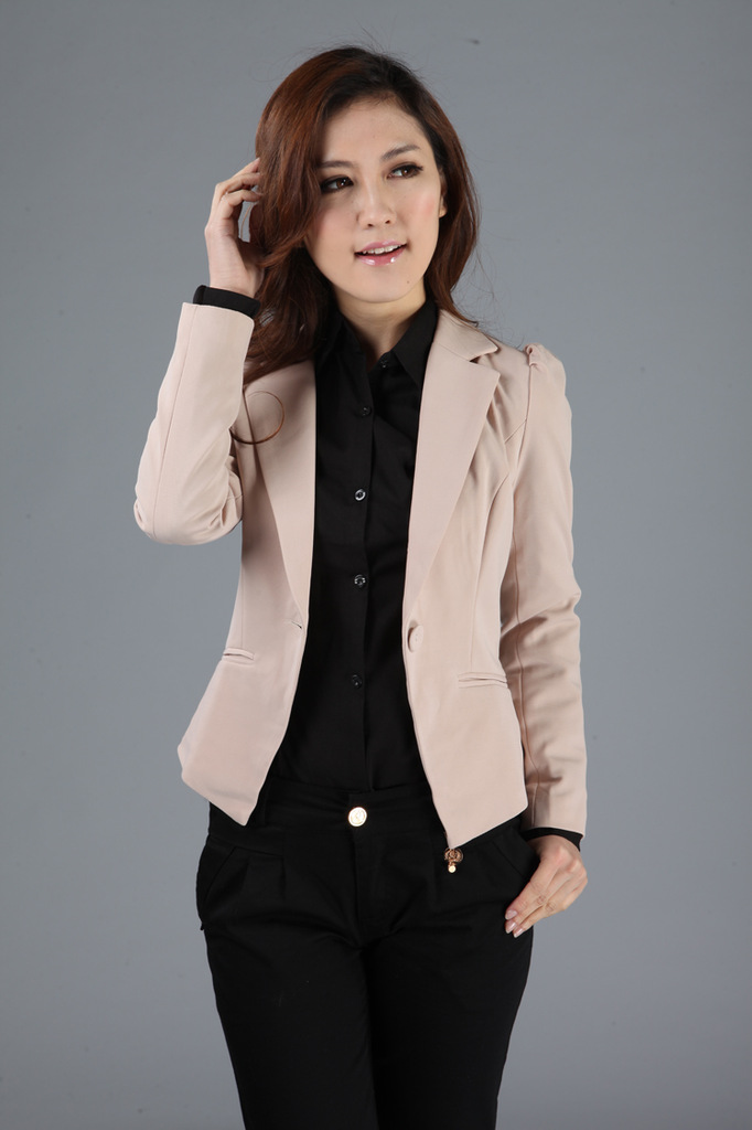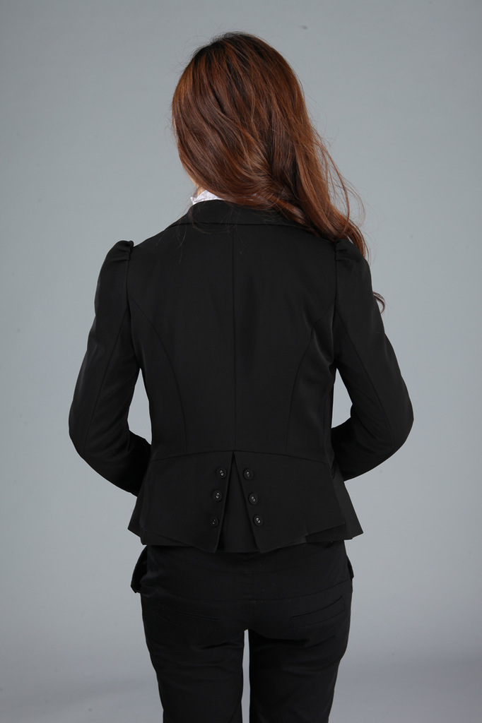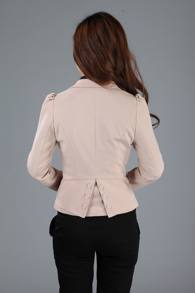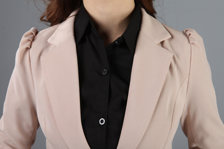 [品名]:韓版修身一粒扣泡泡袖長袖小西裝