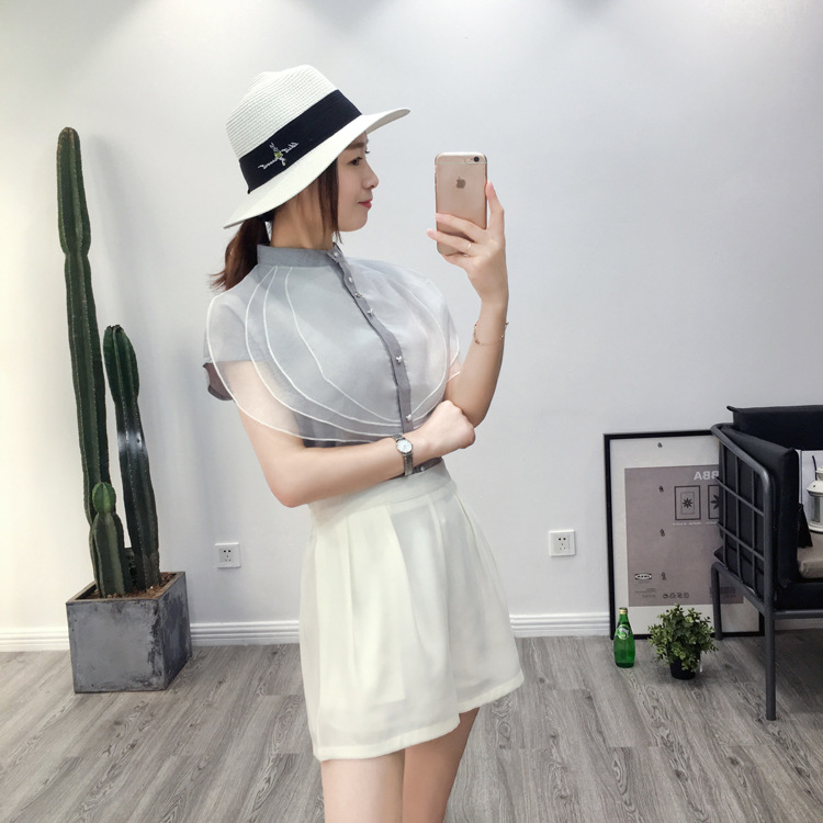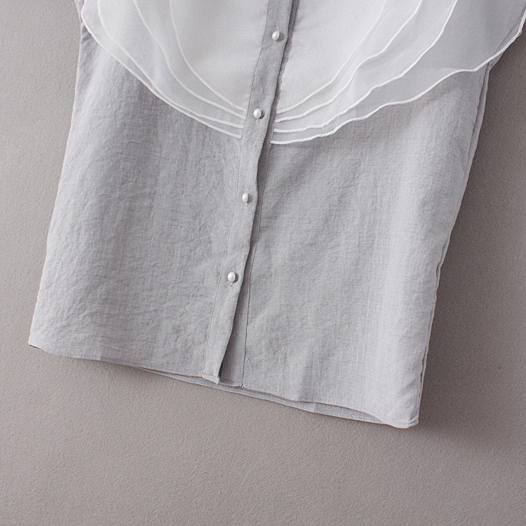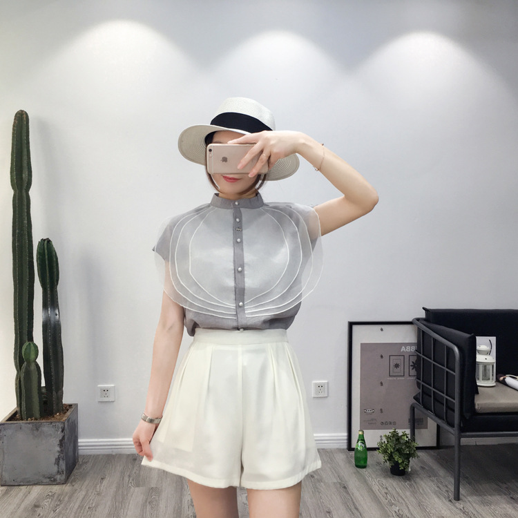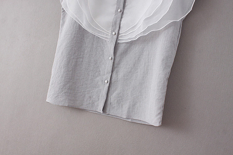 單件重量:0.3KG 材質:滌綸 衣服顏色:歐根紗襯衫灰 尺碼選購 M:肩寬57/袖口34/胸圍98/衣長62 平鋪測量尺寸,單位:cm厘米,沒有拉伸,不考慮彈性范圍內的數據,誤差范圍1~3cm |