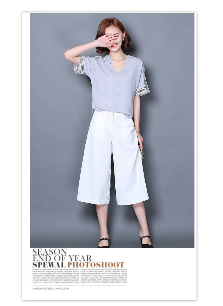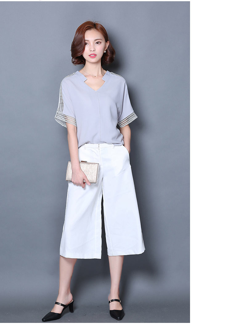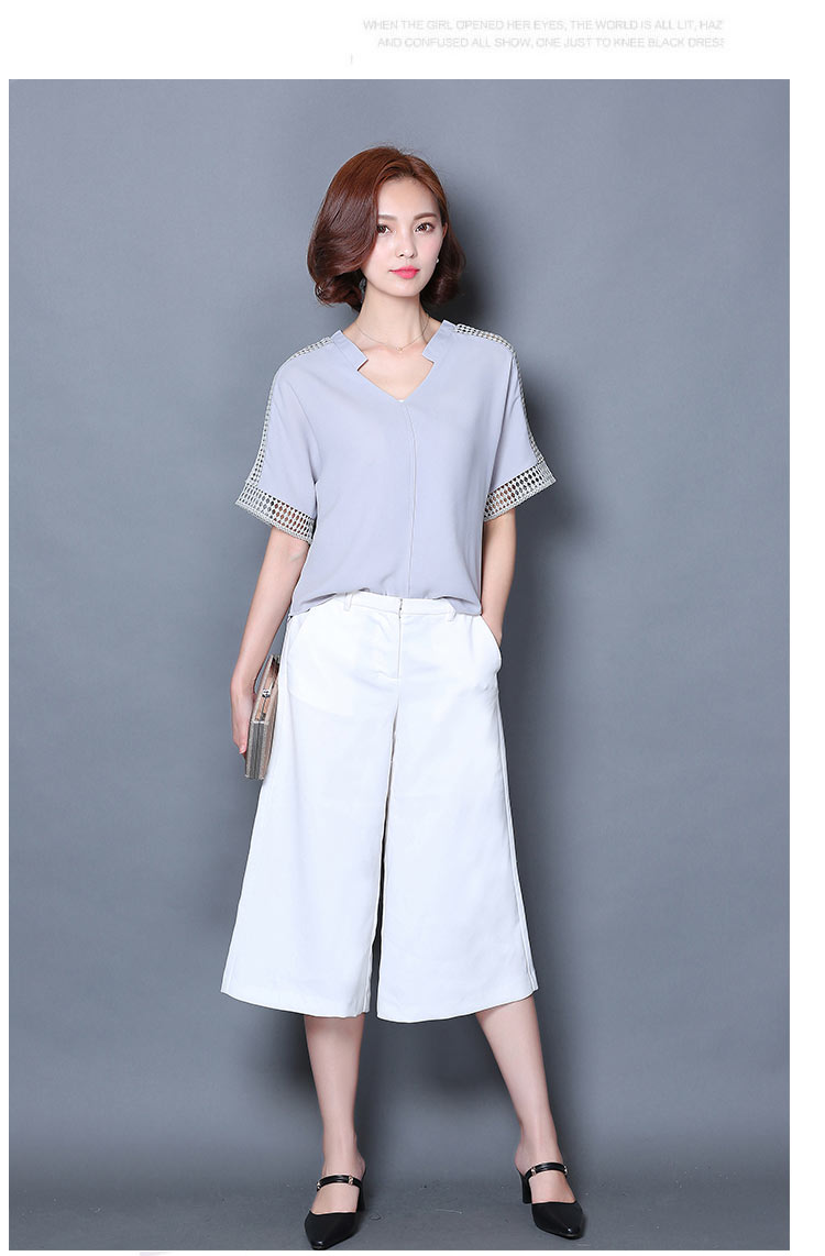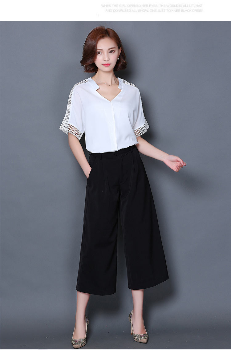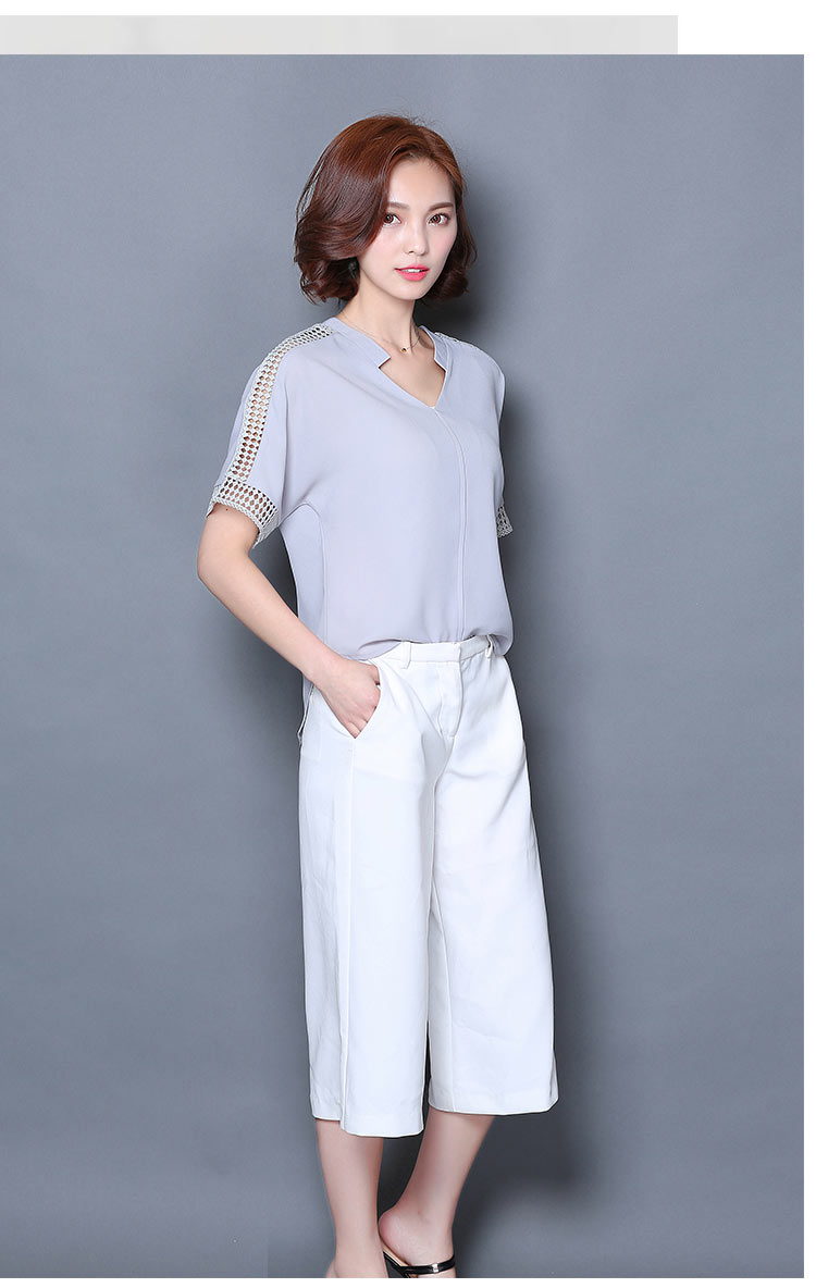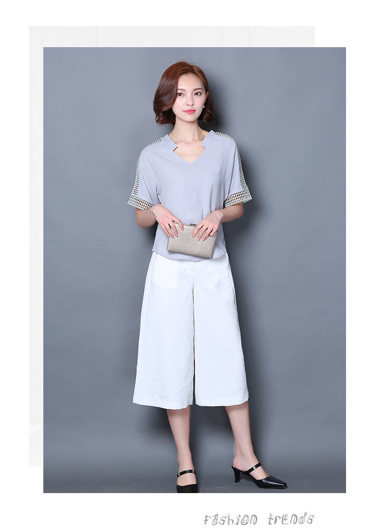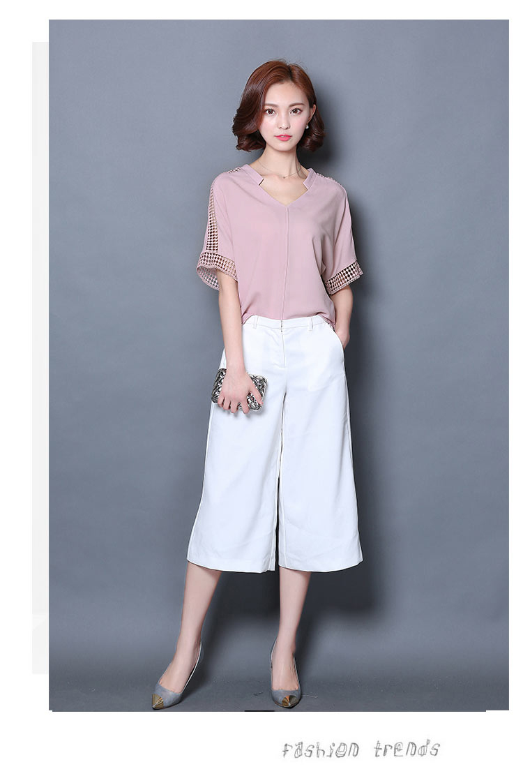 2016夏季新款大碼女士上衣韓版純色寬松顯瘦鏤空短袖V領雪紡衫