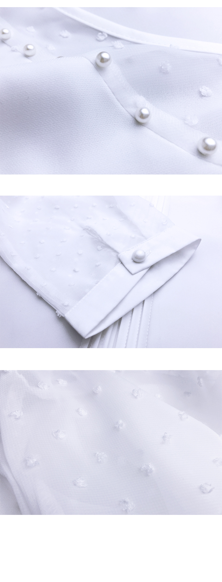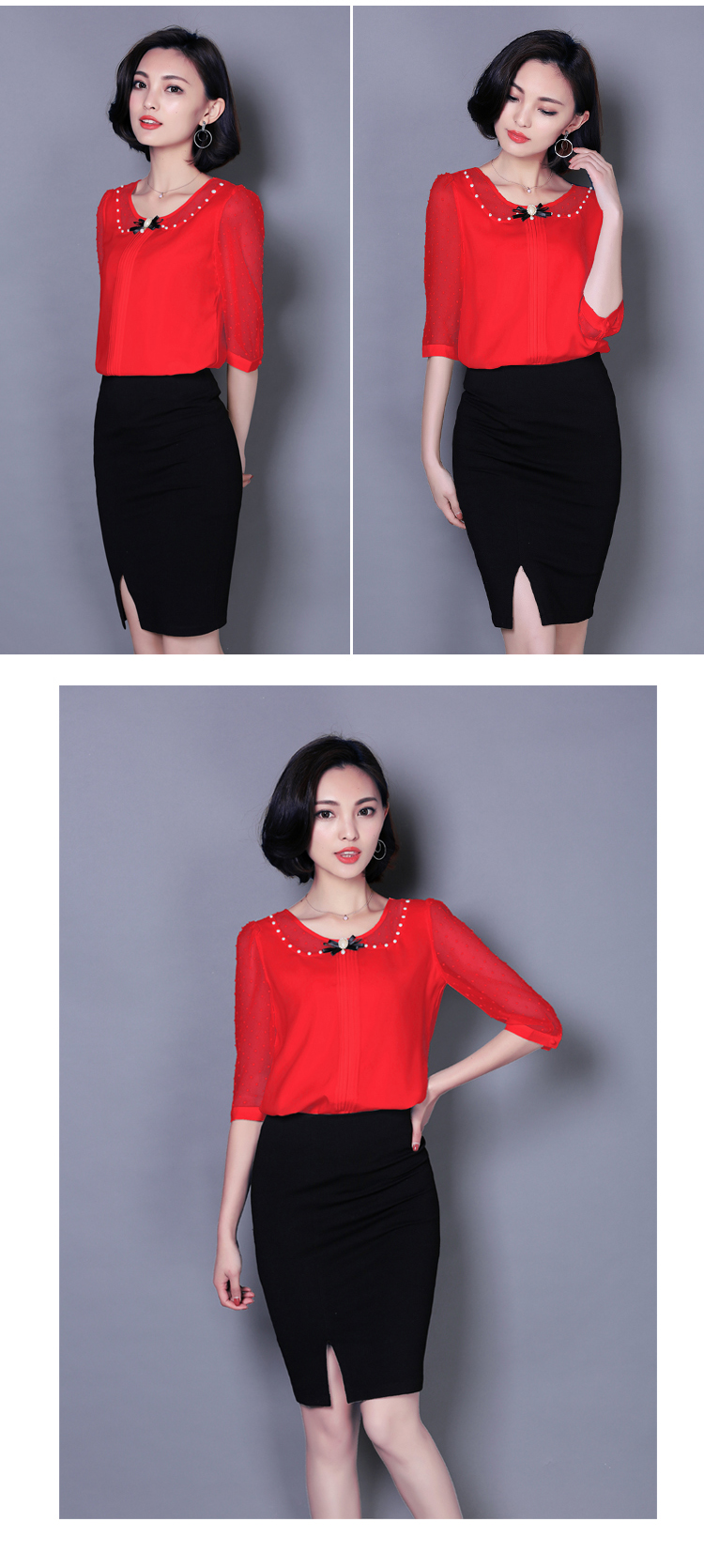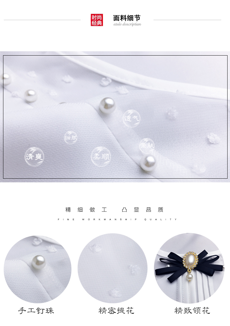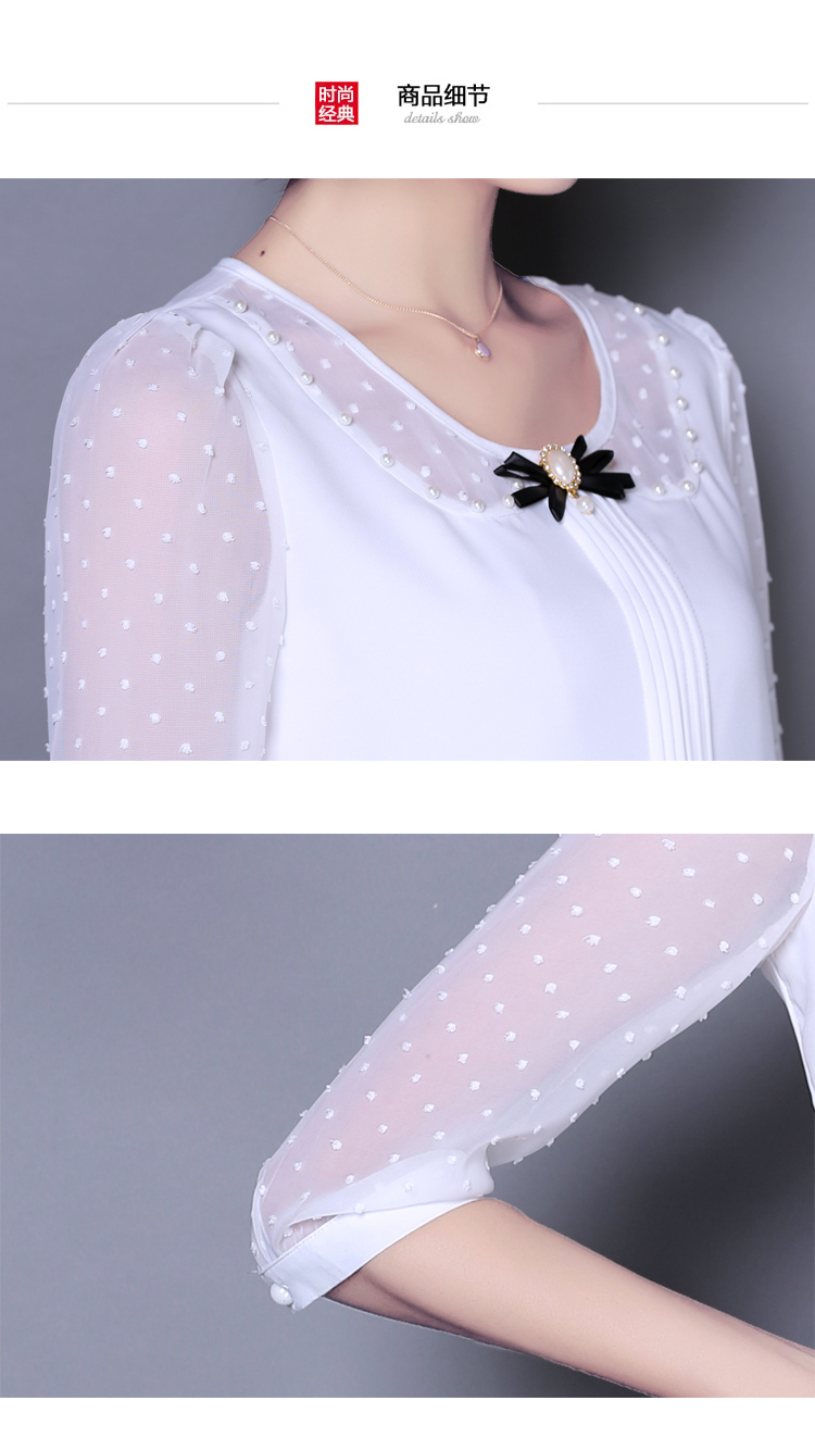 實拍雪紡衫女五分中袖2016春夏新款韓版修身圓領釘珠雪紡小衫上衣