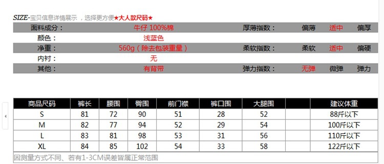 各位客戶請註意,倉庫發貨前都會檢查好再打包,前麵一位客戶反饋,這個款少發瞭一條帶子,但倉庫記錄沒有少發,我們選擇相信顧客,虧本 重新補發背帶過去!需要申明:這個款有一條紅色背帶,倉庫配貨檢查褲子和背帶之後,都會把紅色背帶放在褲子中間,再裝進包裝袋子!請在簽收前,在快遞麵前檢查,有問題請寫到快遞單上,並且第一時間聯系我們說明,簽收後任何理由的退換貨,或者補發帶子,費用由買傢負責。