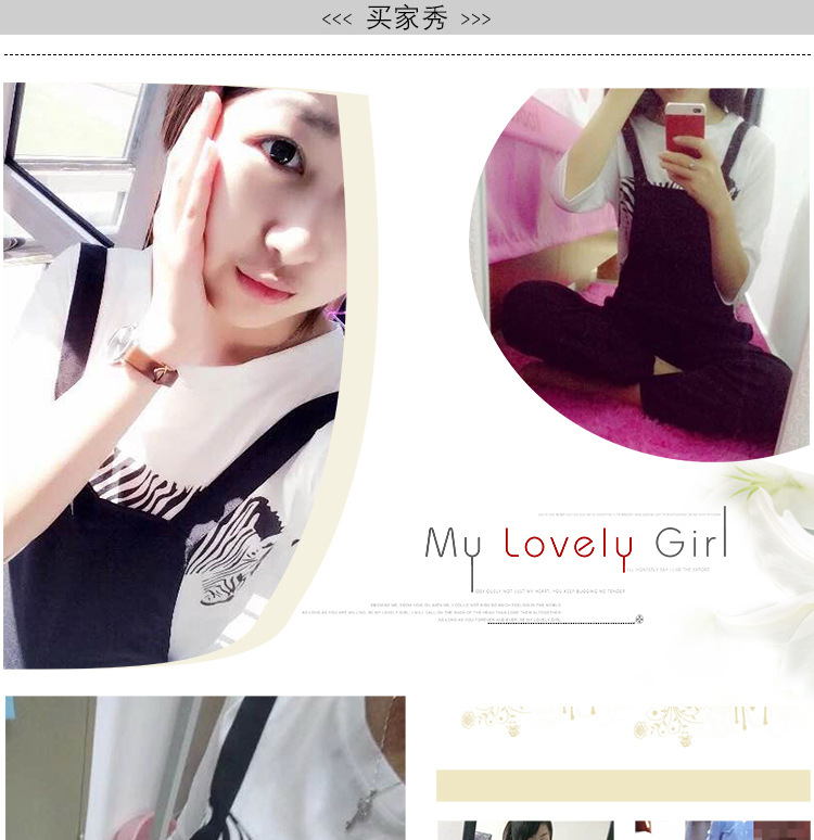 2016新款春夏純棉T恤+背帶褲 套裝女韓版黑色顯瘦七分褲一件代發