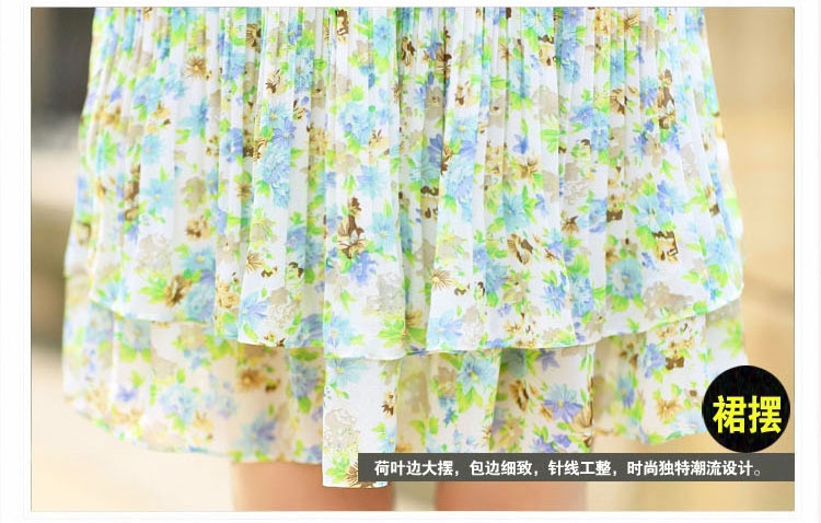2016夏裝新款女裝長裙子中長款短袖大碼拼接碎花印花雪紡連衣裙女