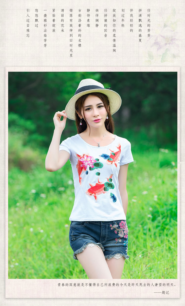C1208 菲米娜2016夏季民族風彈力新款獨特繡花牛仔短褲蕾絲熱褲_背帶褲_女裝_服裝_貨源_批發一路發