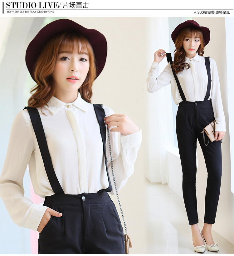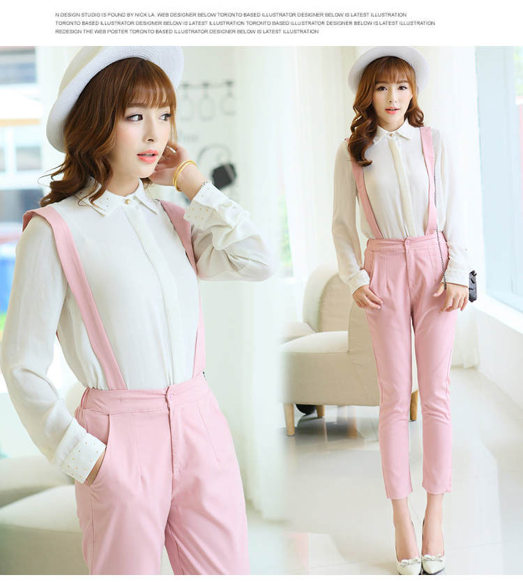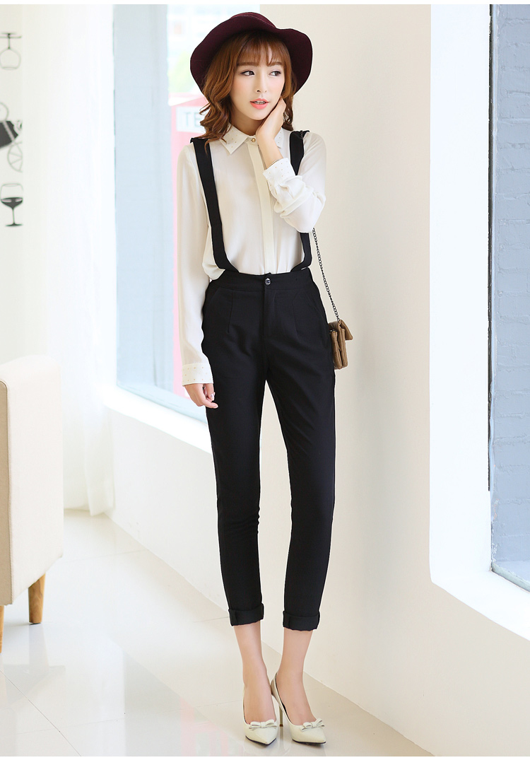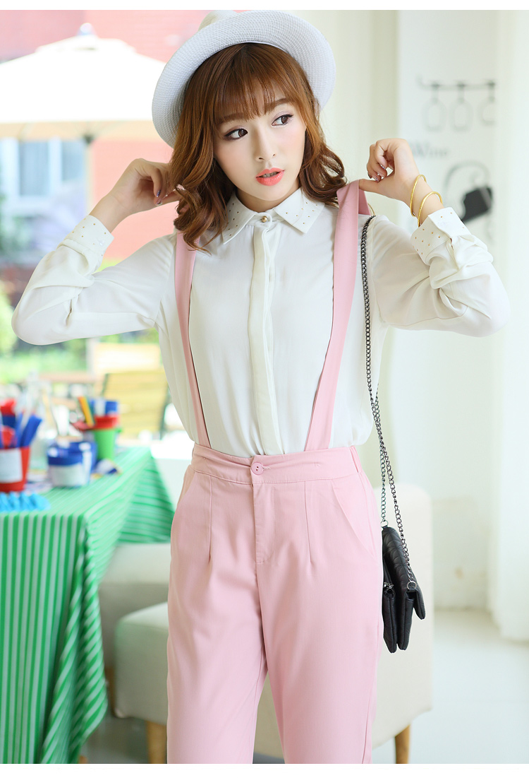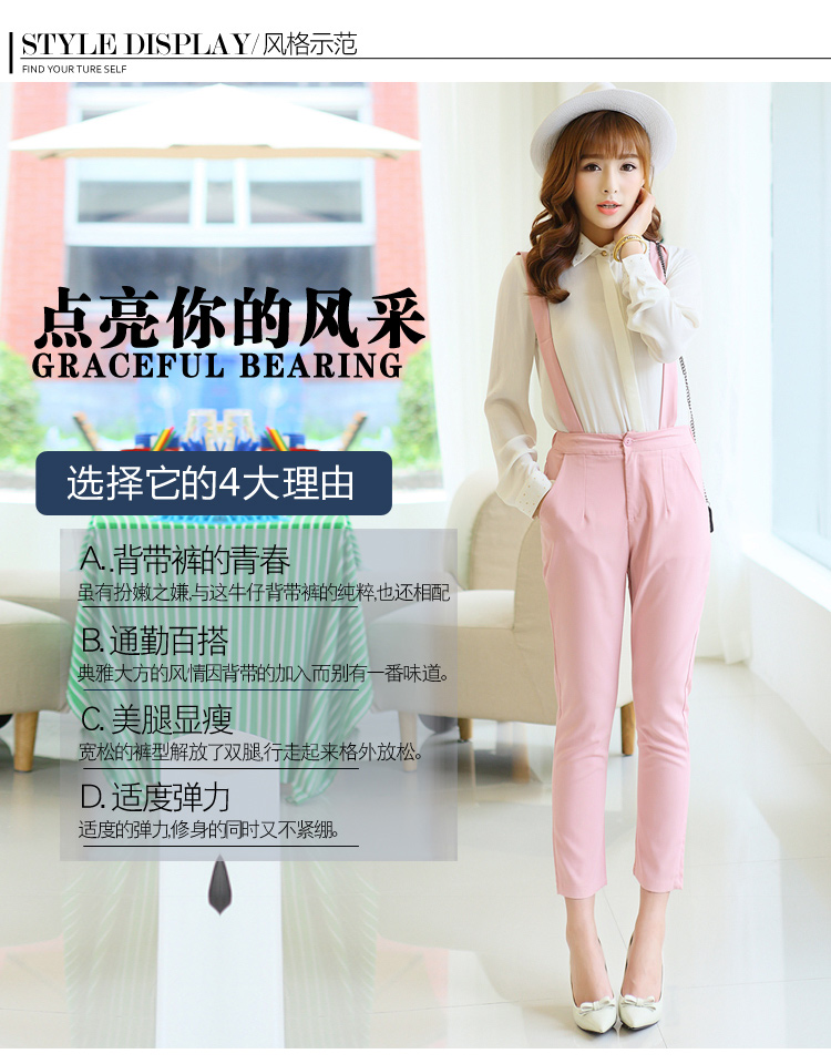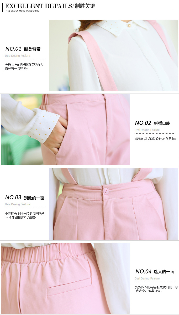 2016春秋新款韓版 甜美氣質時尚學院風 純色浪漫 潮流 背帶褲