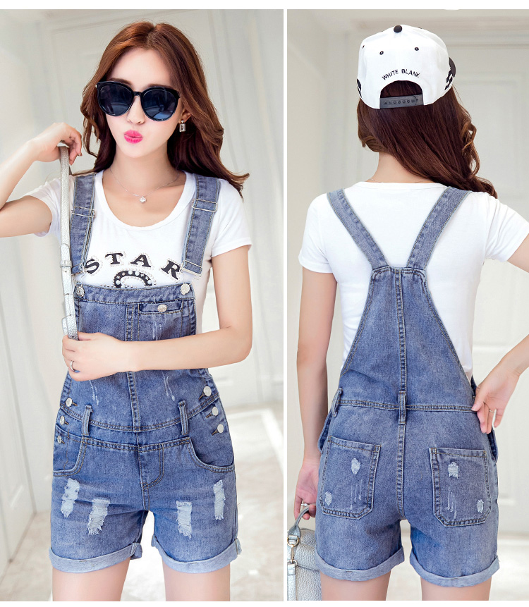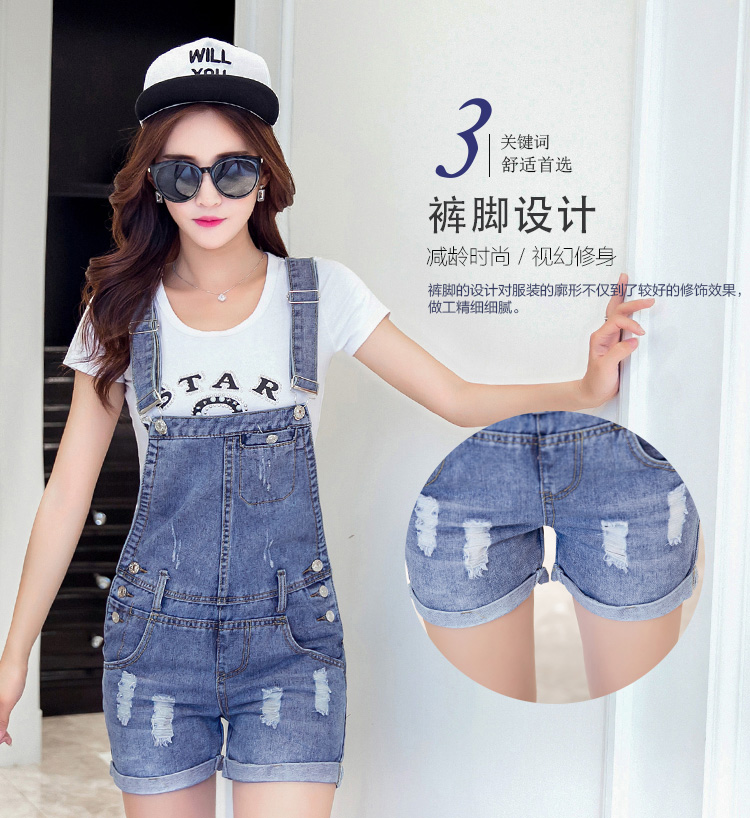 韓版潮流百搭學院風牛仔連衣褲減齡背帶短褲女