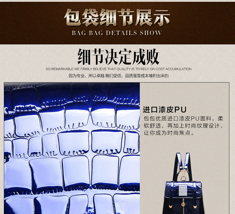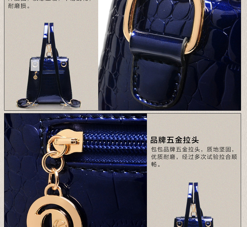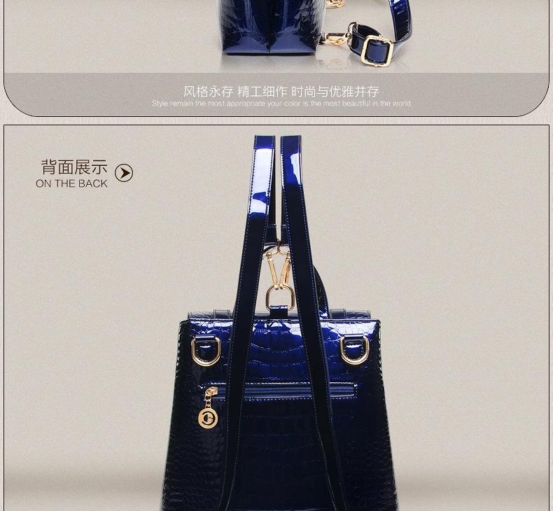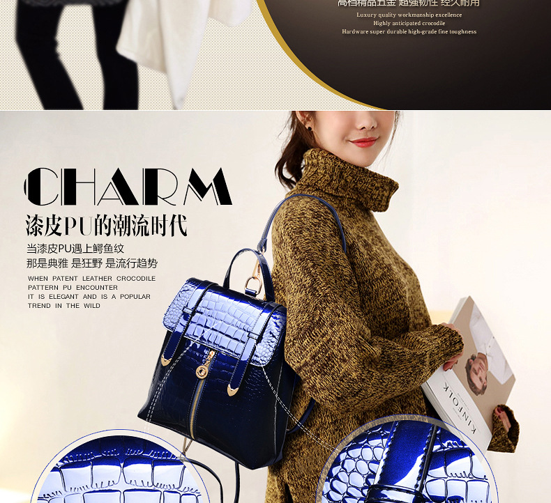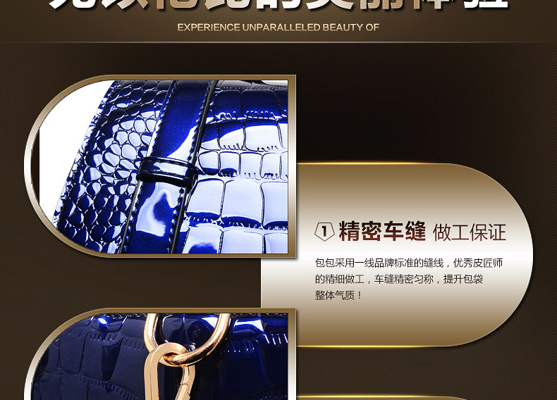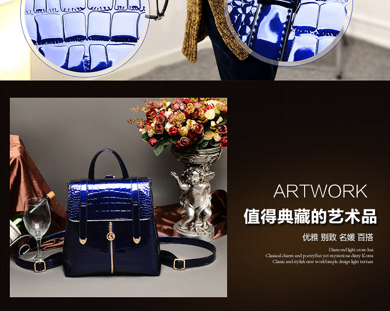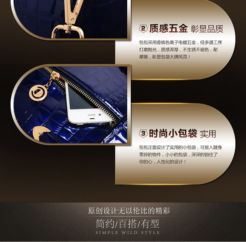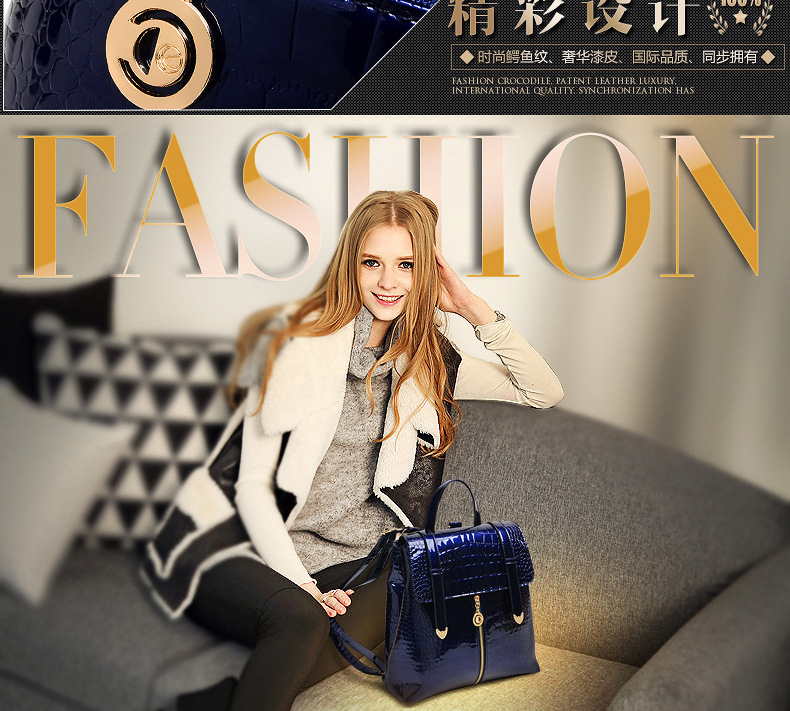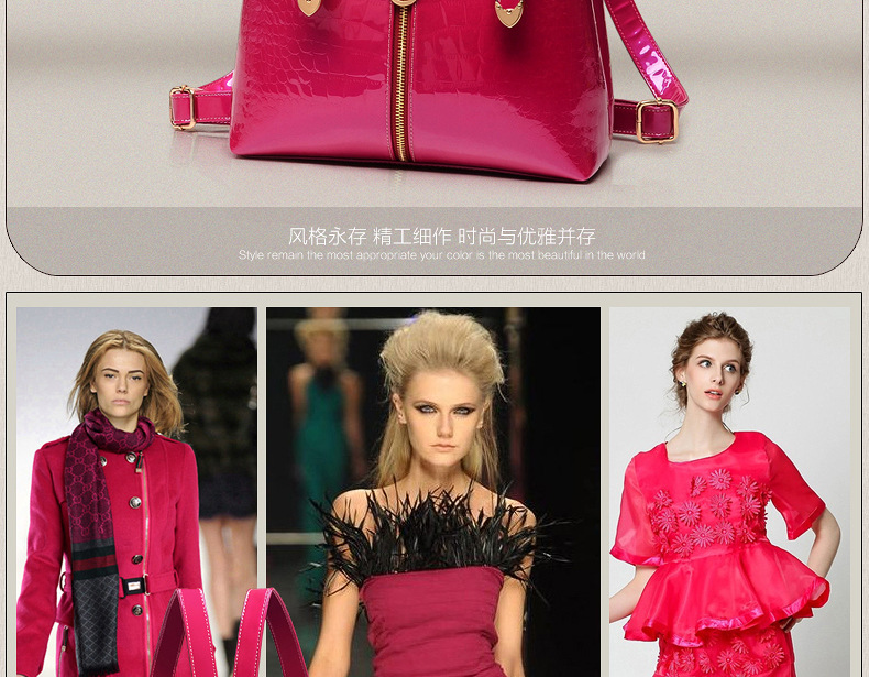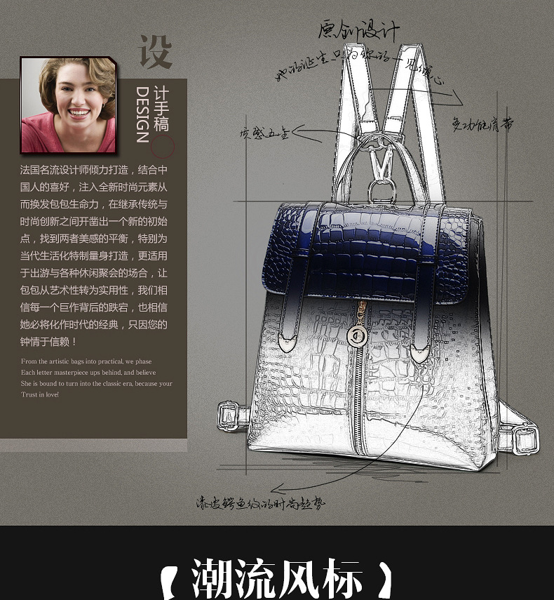 主營產品是款式新穎,樣式齊全的各類時尚新潮女包,手袋。其產品種類細分有:女士包,休閒女包,時尚女包,外貿女包,韓版女包,真皮女包,仿皮女包,PU女包,PVC女包,單肩包,雙肩包,手提包,挎包,斜跨包,晚宴包,休閒包,化妝包,學生包,手袋系列,女士手袋,真皮手袋,仿皮手袋,PU手袋,PVC手袋,時款袋,帆佈手袋等系列產品。設計風格獨特、前衛,設計師們通過自然的色彩運用,將時尚的流行元素,柔美的線條,休閒的情調,有機的融合在一起。從而將時尚與生活完美的結合,使其產品卓而不凡,脫穎而出。同時,我們也可以按照您的要求(來樣來圖)設計製作,並提供皮具加工,生產工藝能在產品上添加各種圖文之烙印燙金,燙銀,絲印,刺繡等。其產品以其造型優美,工藝精湛,暢銷全國各地,並遠銷出口香港,臺灣,東南亞,歐美等多個國傢和地區。