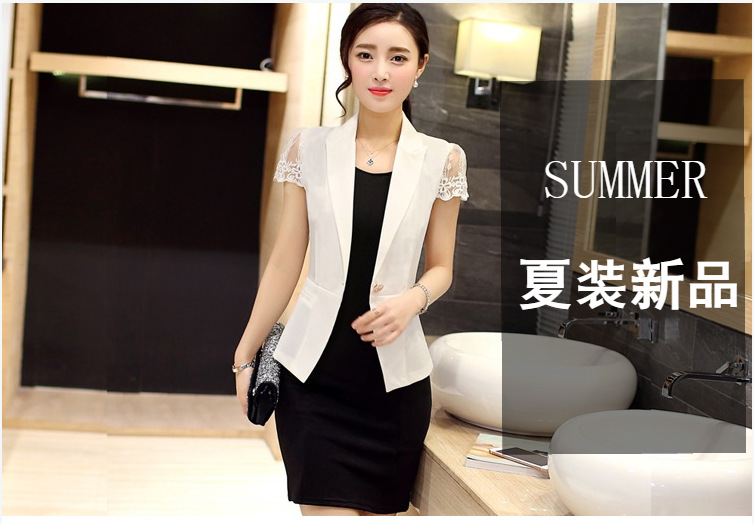 2016新款修身薄OL職業小西裝短外套夏女氣質開衫短袖網紗小披肩