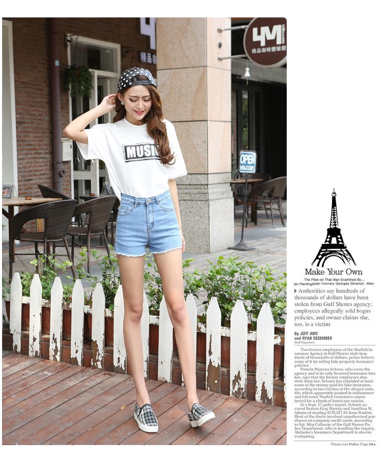 (實拍)韓版毛邊復古寬松百搭高腰牛仔短褲熱褲女潮