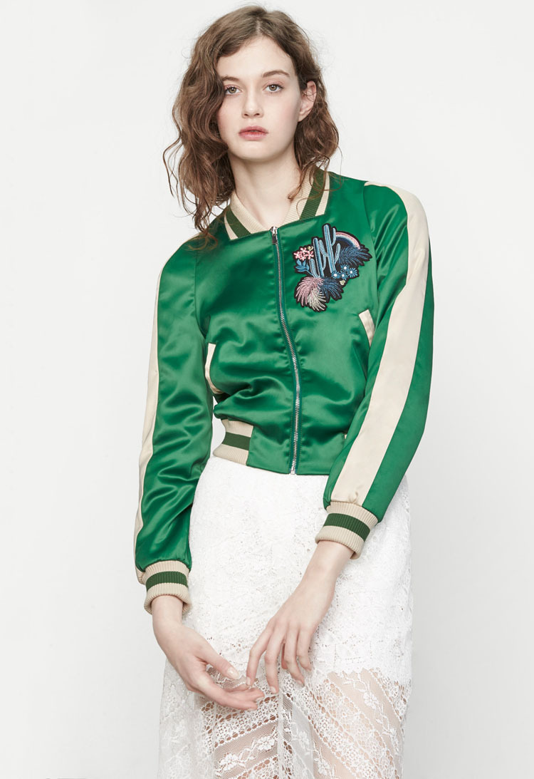 這件重工繡花棒球服非常完美得將它們融合在一起