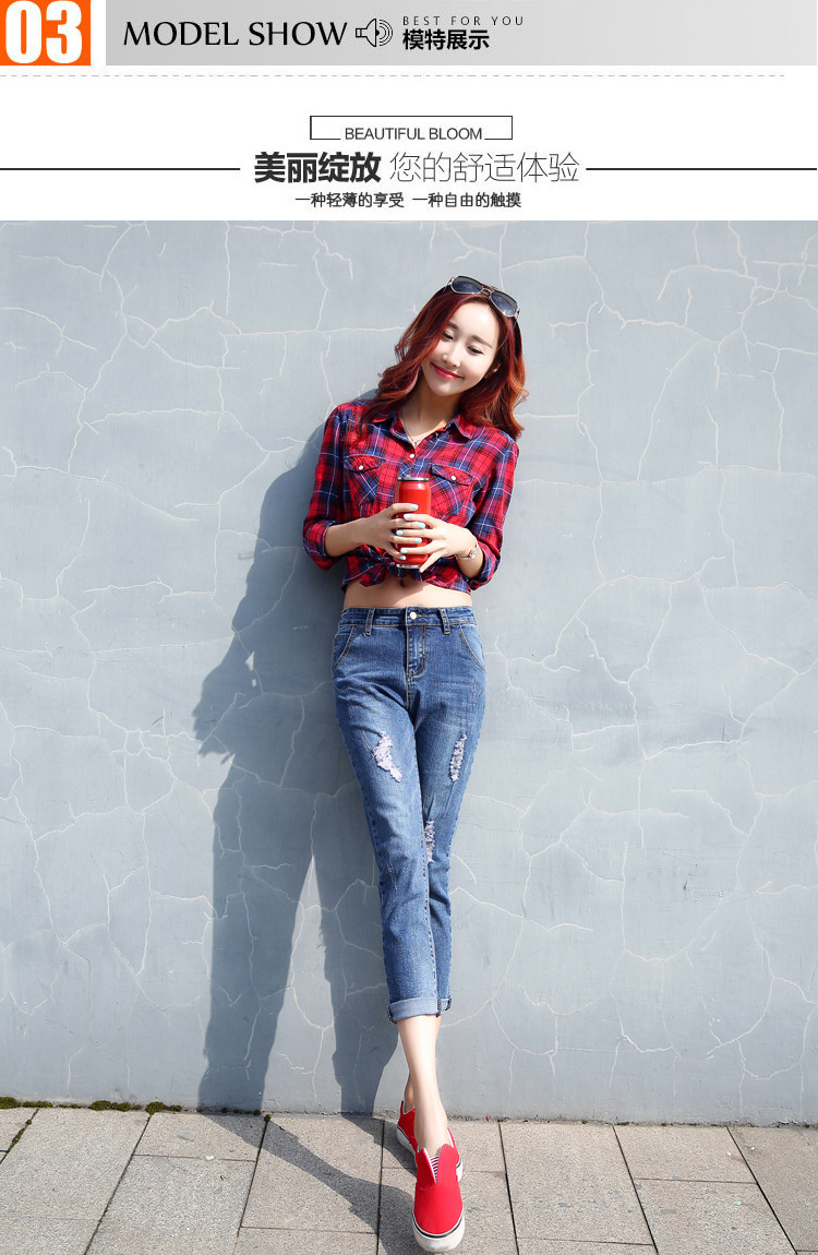 2016春夏季薄款學生破洞磨破水洗九分褲寬松哈倫牛仔褲女825