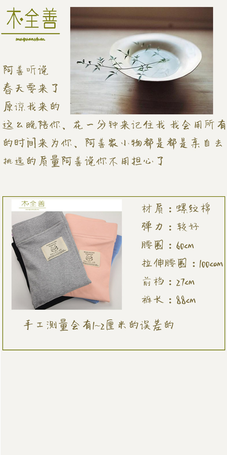 木全善純棉女士內搭褲外穿薄款簡約彈力修身松緊長褲九分韓版春夏
