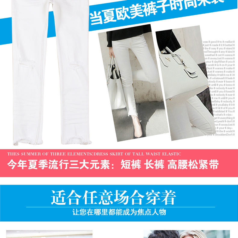 2016年春夏嗆口小辣椒同款褲子窄腳破洞白色牛仔褲 廠傢批發