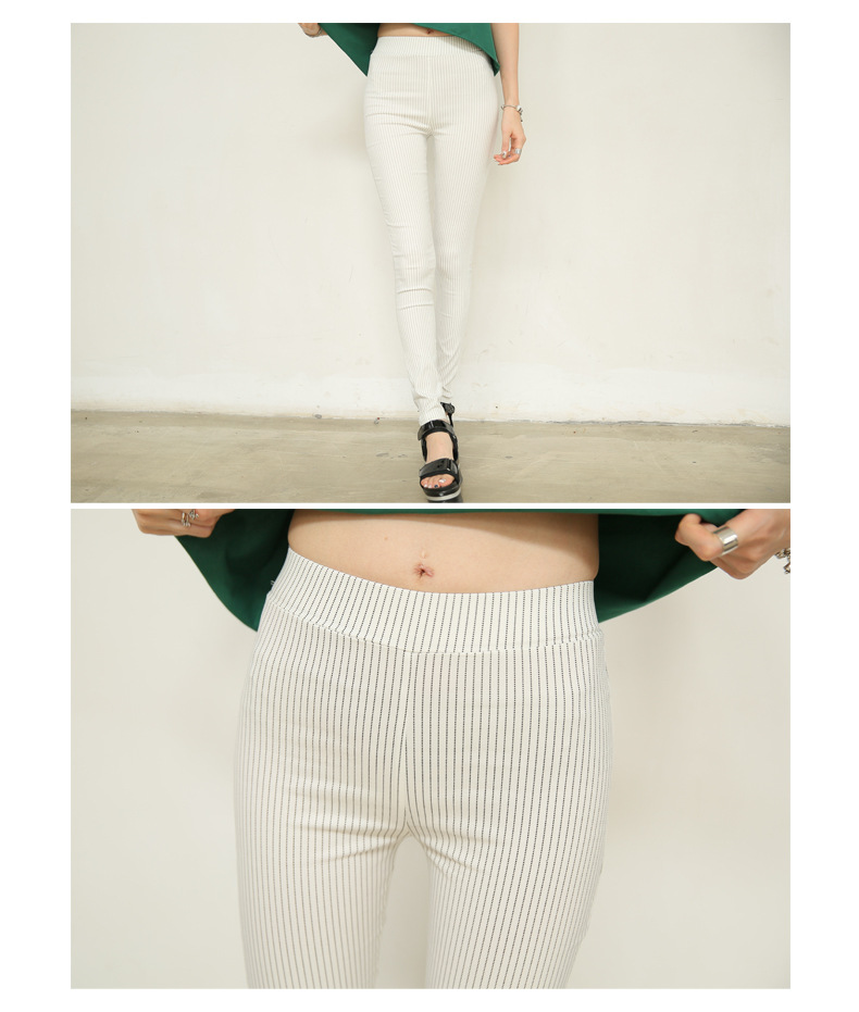 廠傢直銷春款女士豎條紋緊身小腳褲韓版顯瘦內搭褲黑色大碼鉛筆褲