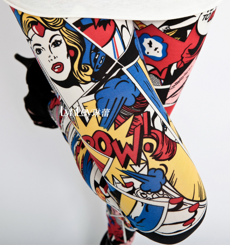 內搭褲 時尚女九分褲 歐美動漫印花鉛筆褲顯瘦小腳褲