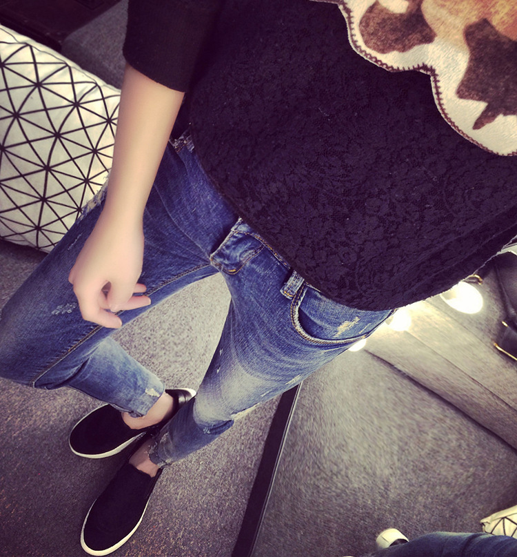 歐洲站新款骷髏頭女士牛仔褲女夏拼接小腳牛仔鉛筆褲長褲淘寶代發