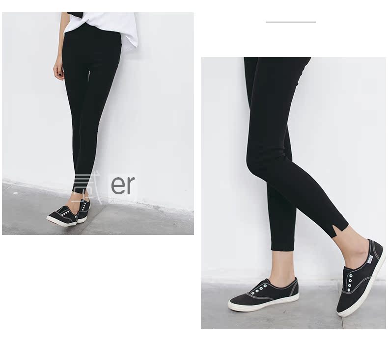 【018】2016夏季新款外穿內搭褲 黑色小腳九分開叉鉛筆褲一件代發