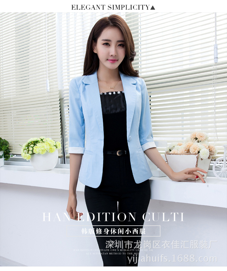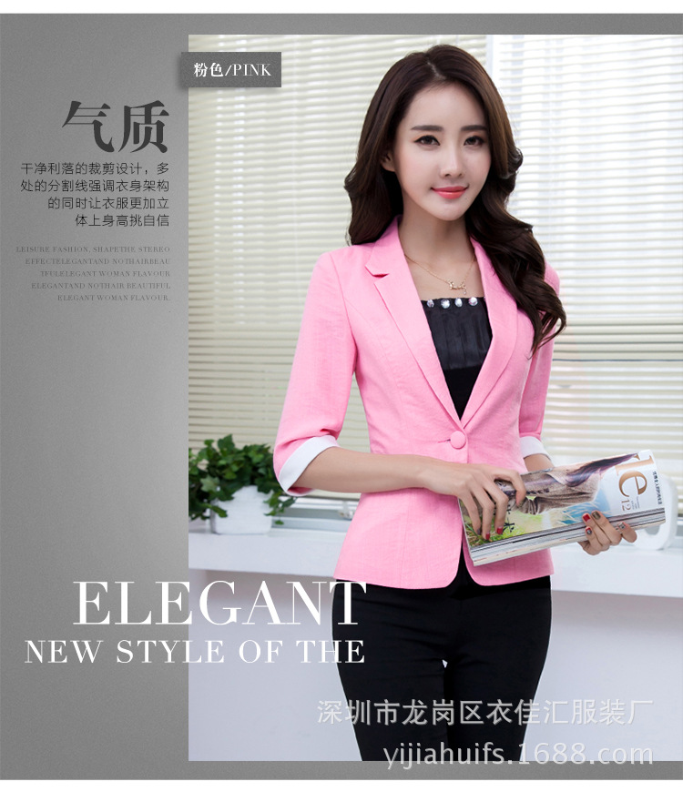 2016春秋裝韓版修身顯瘦大碼小西裝女外套短款中袖百搭休閒小西服