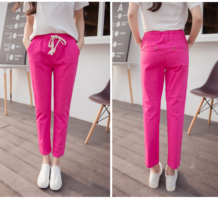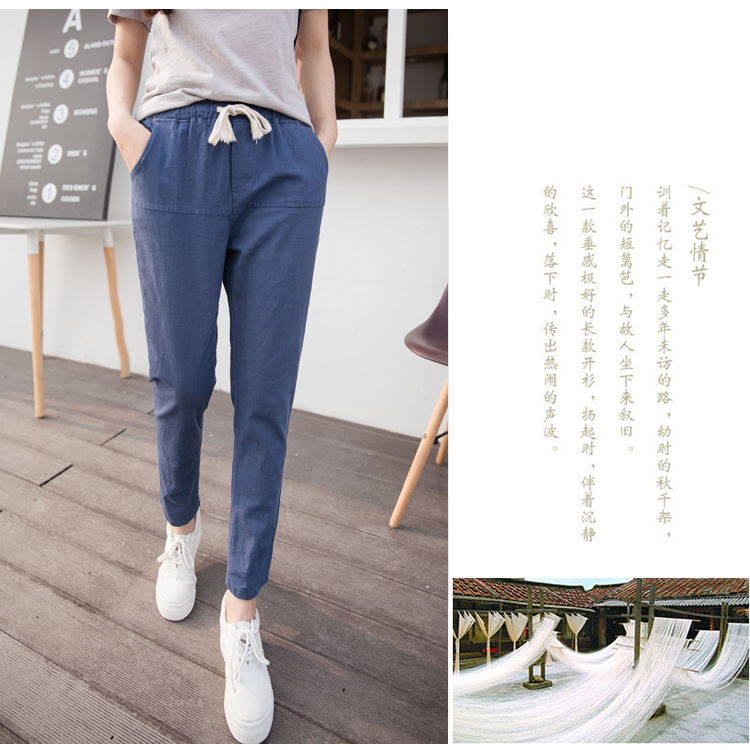 2016夏季新款仿棉麻九分褲寬松哈倫褲大碼松緊腰女褲休閒褲