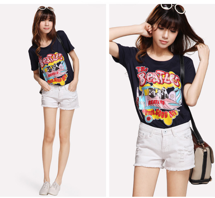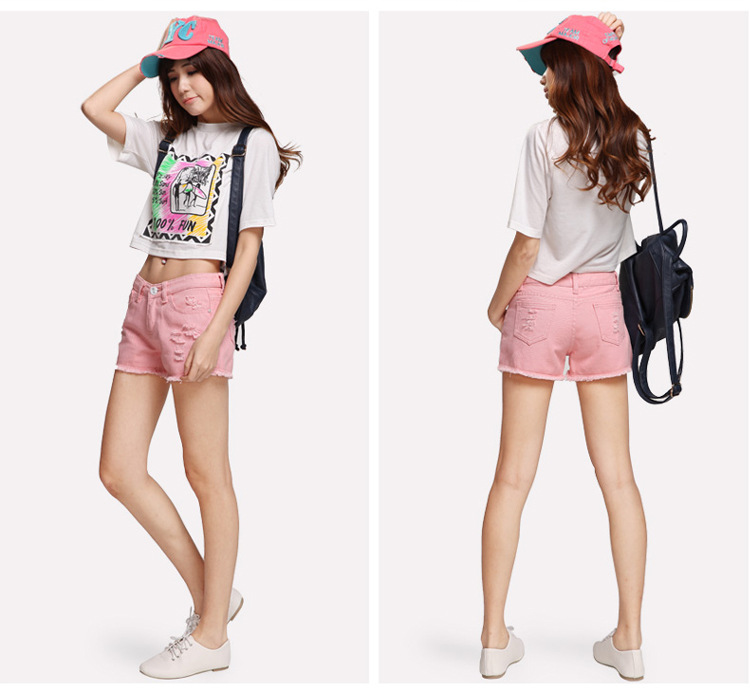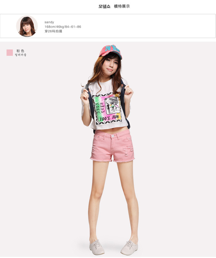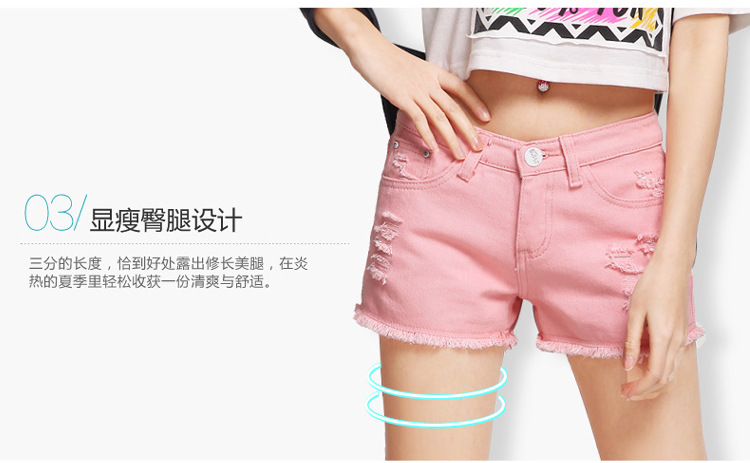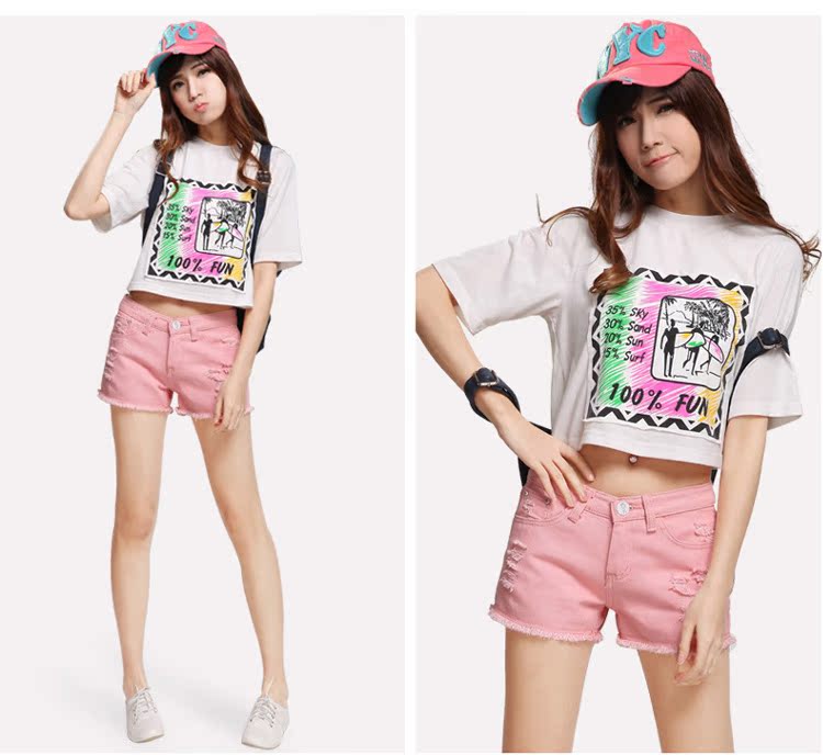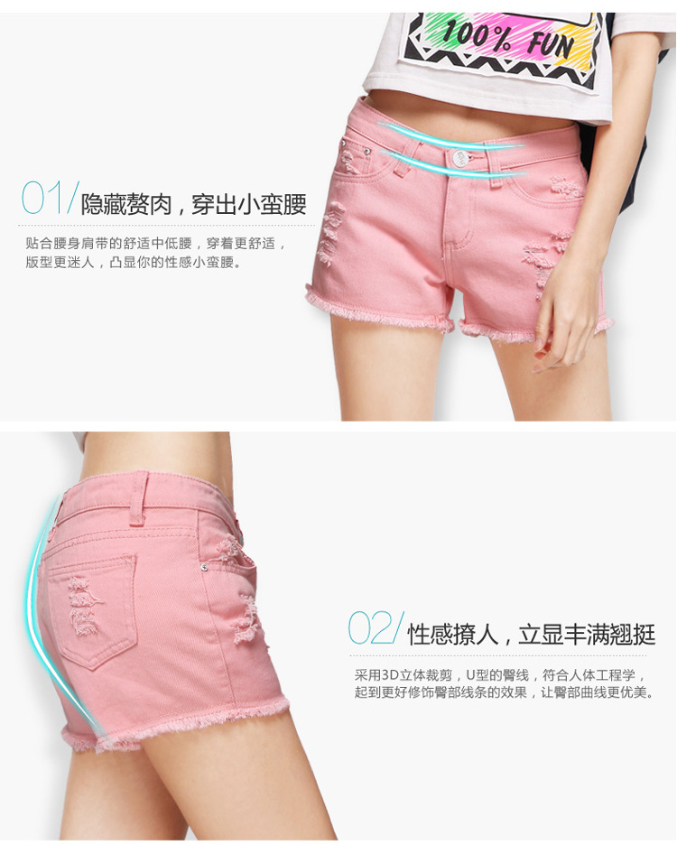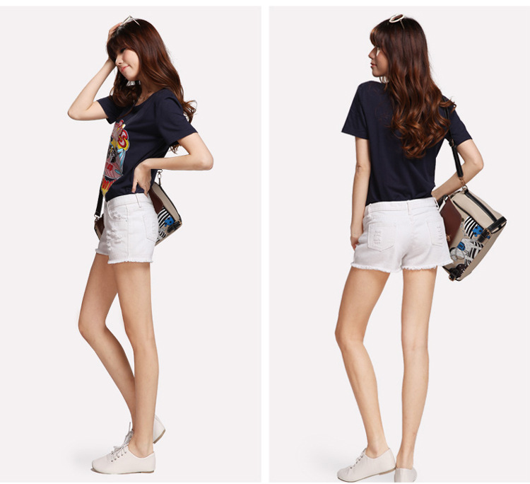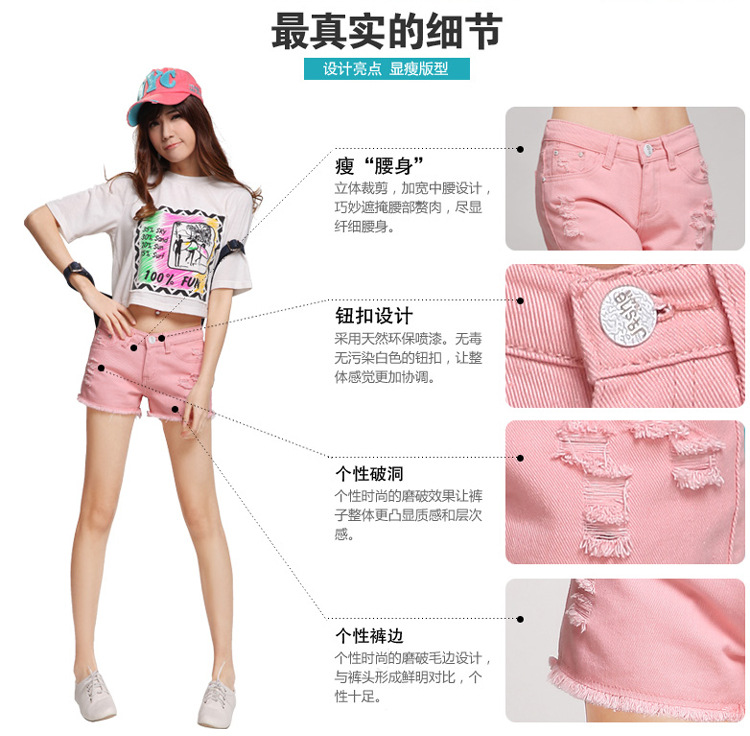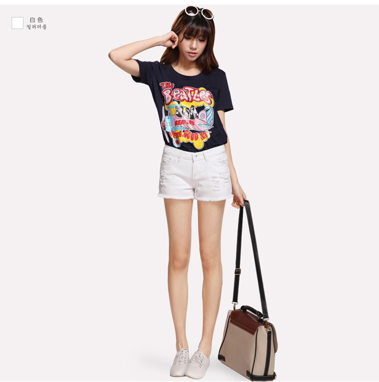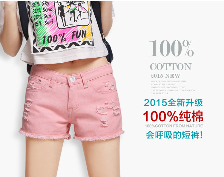 2016韓版時尚百搭中腰彈力牛仔短褲女胖mm寬松顯瘦大碼毛邊女褲子