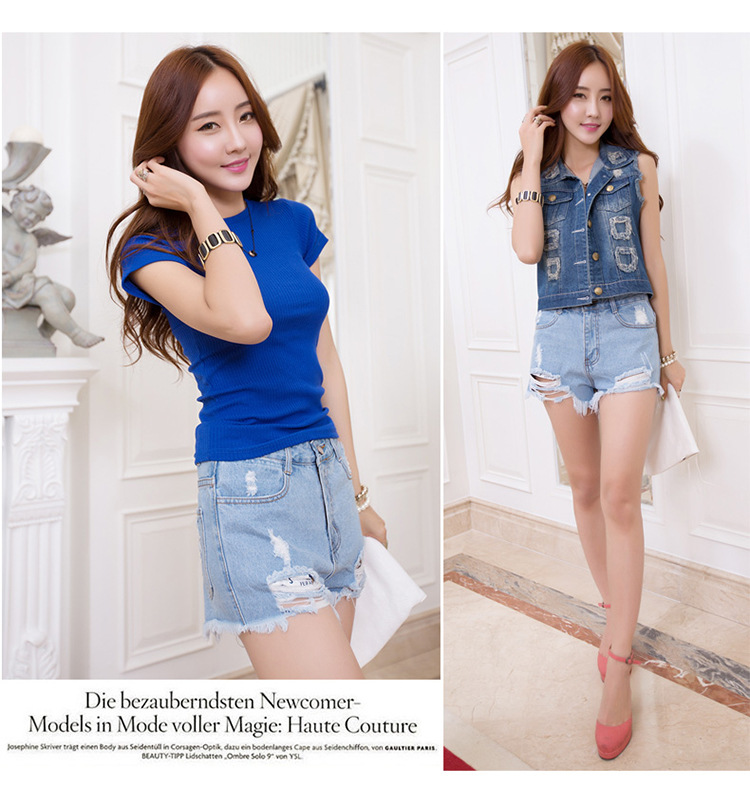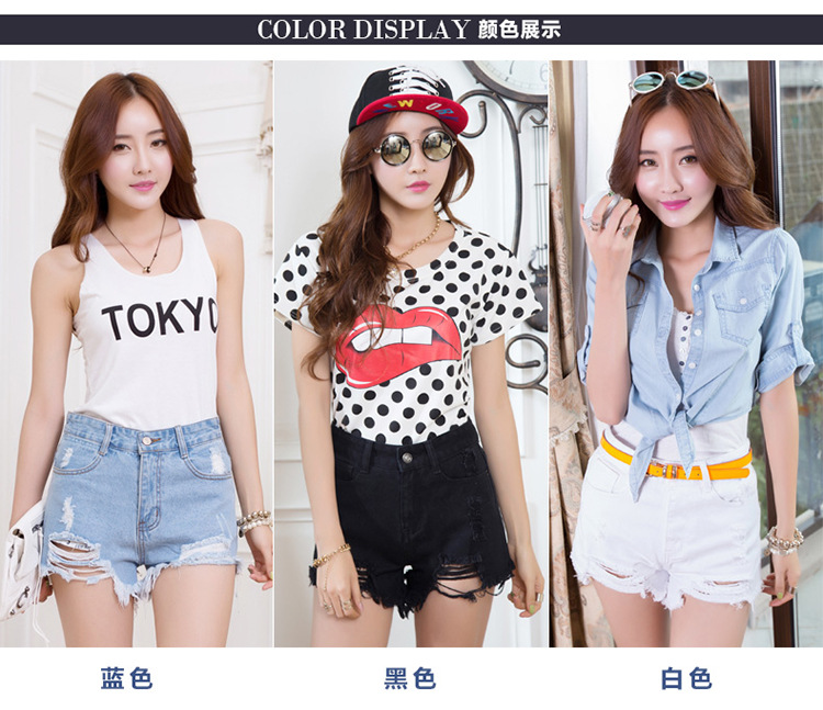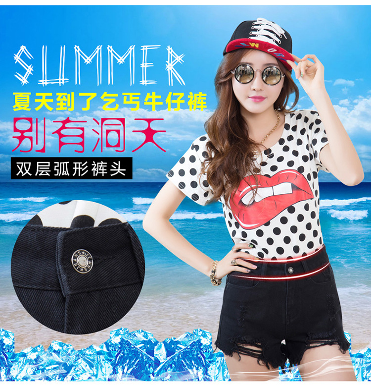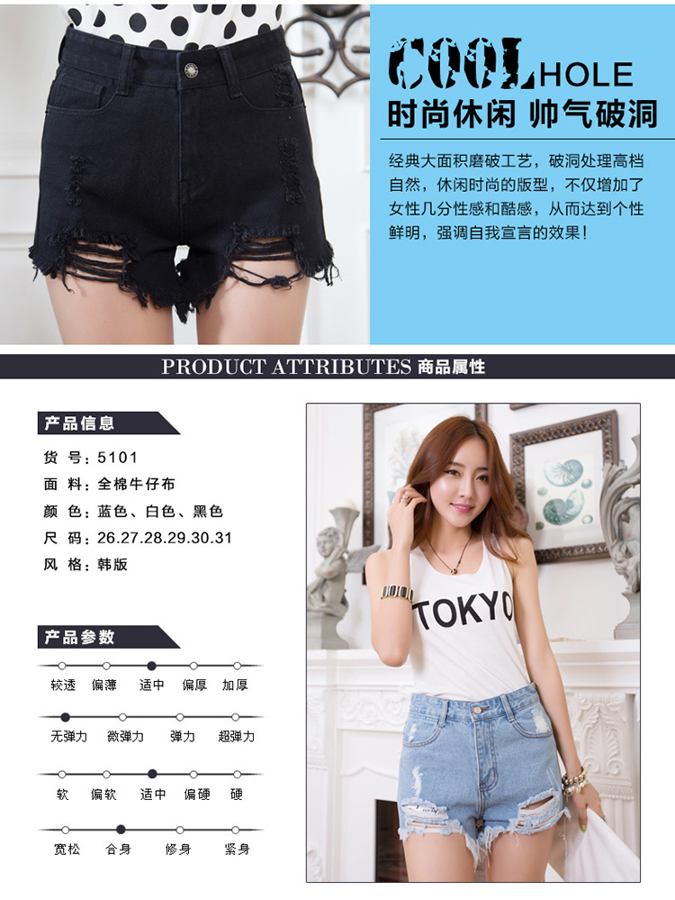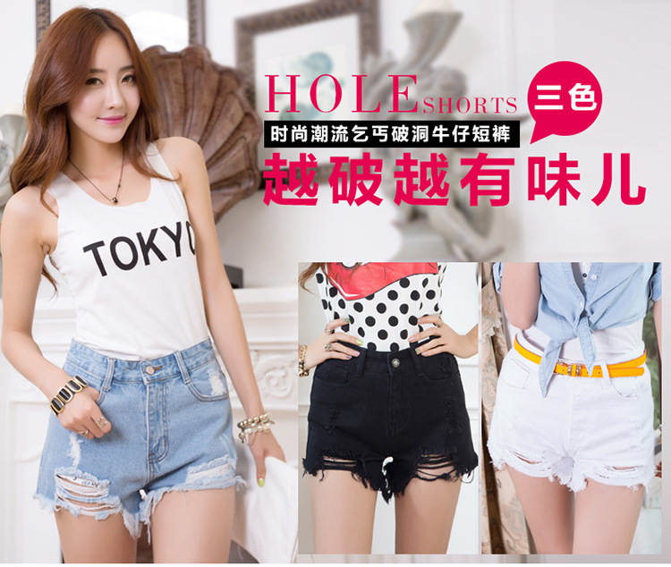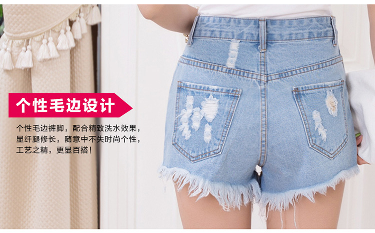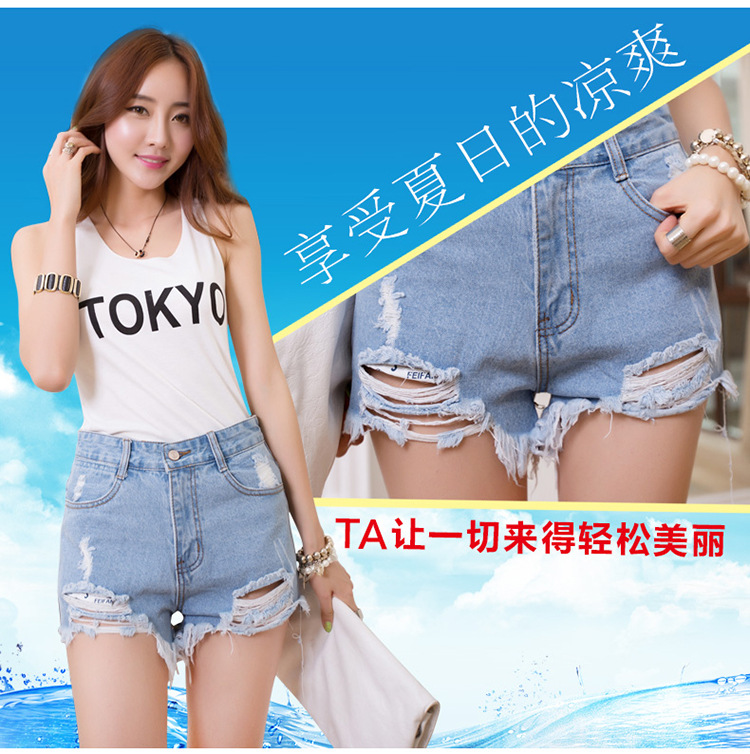 2016新款破洞闊腿牛仔褲 韓版顯瘦寬松高腰牛仔短褲女