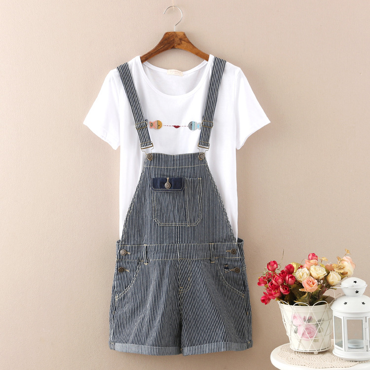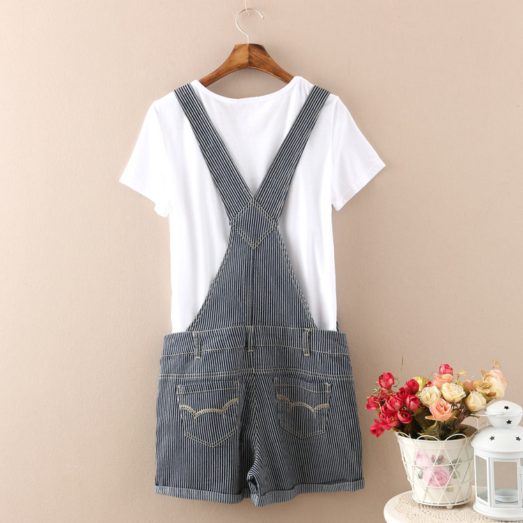 2016春夏新品女裝條紋顯瘦牛仔背帶褲休閒個性女式短褲潮吊帶褲女