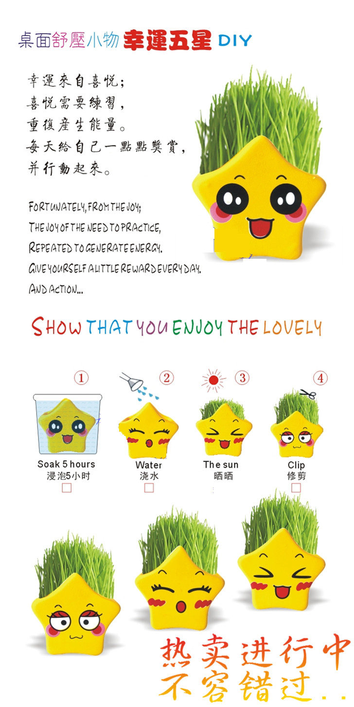 可愛黃色草娃娃 桌麵迷你植物五星星草頭娃娃盆栽批發