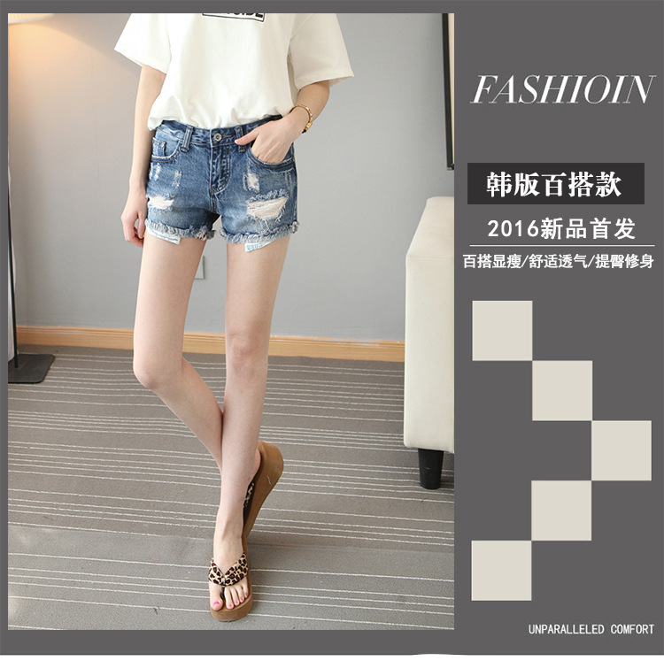 2016夏裝牛仔短褲女夏顯瘦破洞磨破新款韓版學生彈力毛邊牛仔褲_牛仔短褲_女裝_服裝_貨源_批發一路發