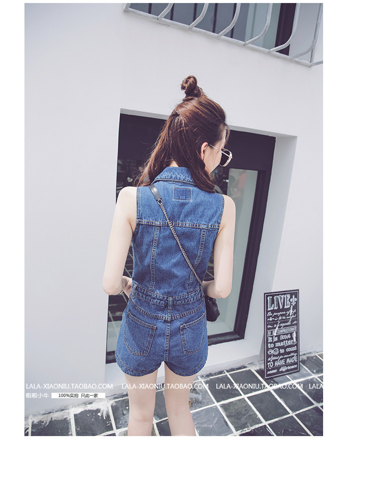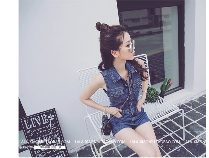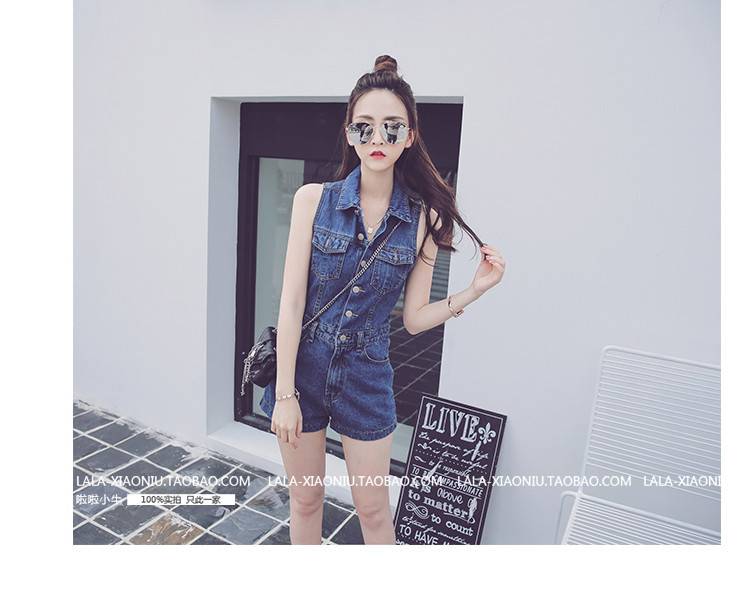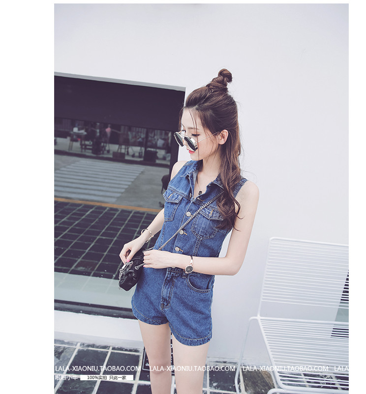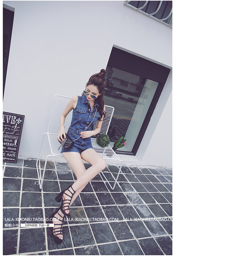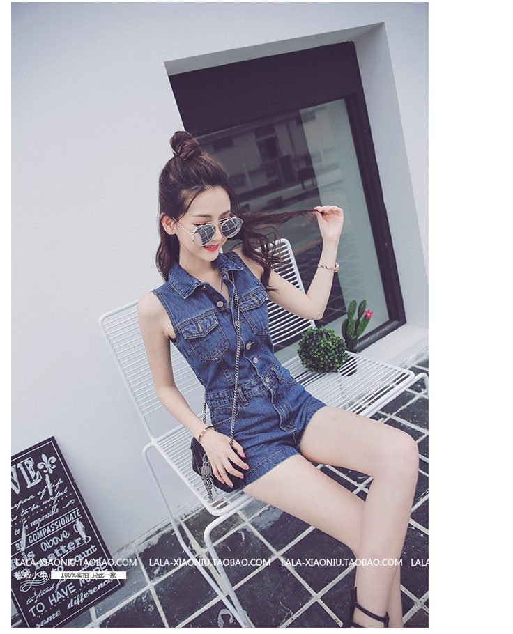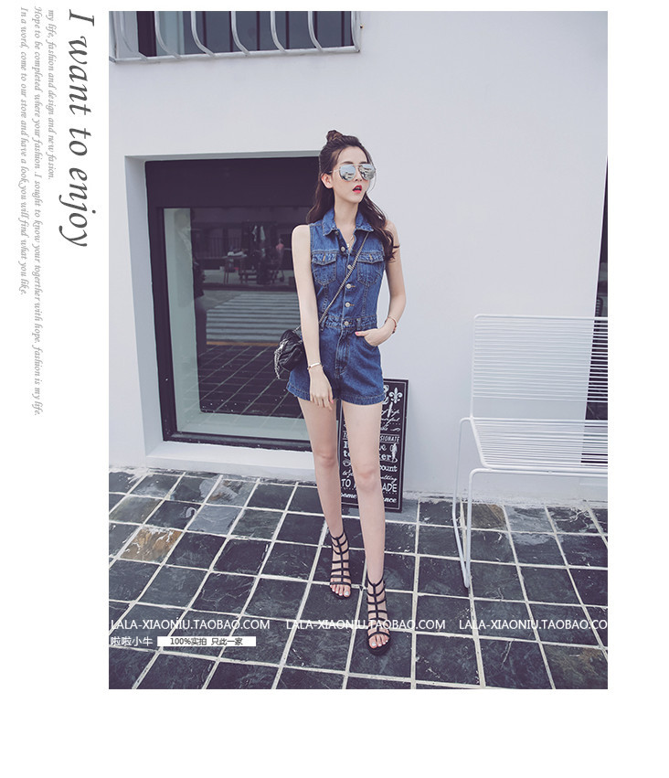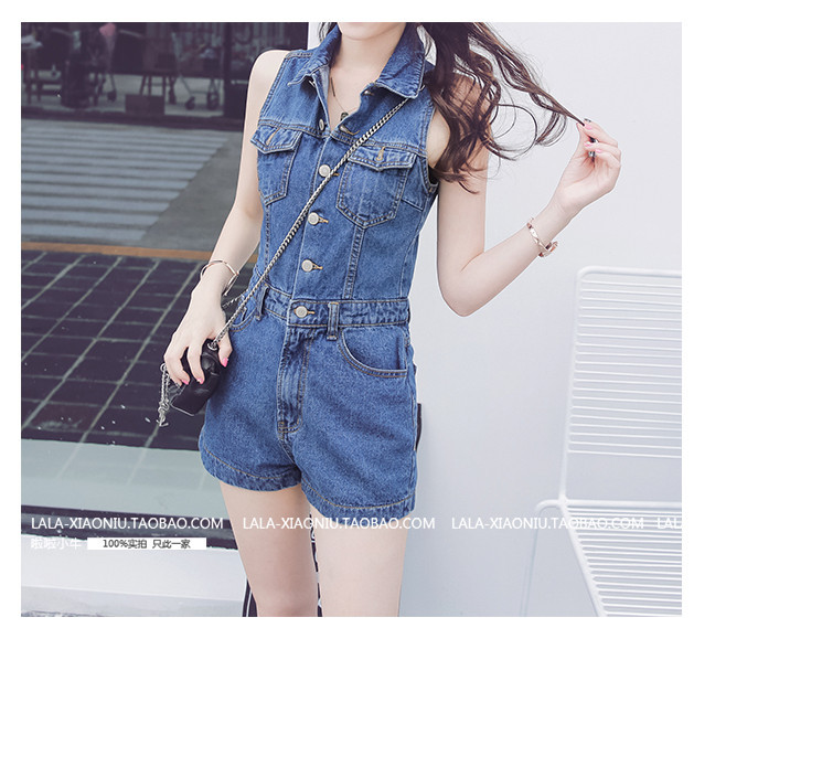 2016夏季新款韓版時尚單排扣牛仔連身褲褲無袖翻領性感修身顯瘦