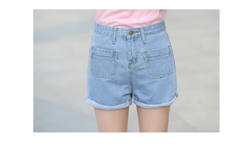 實拍夏季新款女褲百搭款雙口袋水洗卷邊牛仔短褲