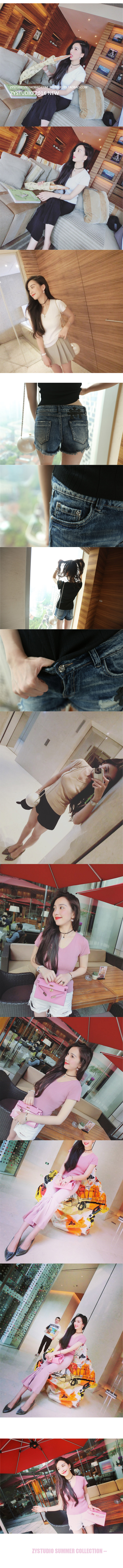 【zystudio】ZY喜哥 4色V領女人味基礎冰麻針織上衣