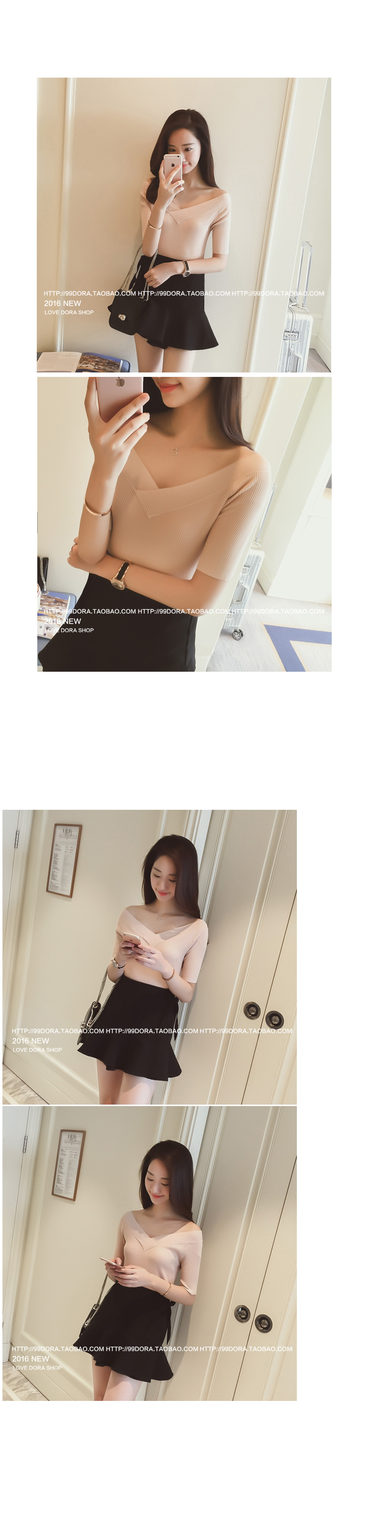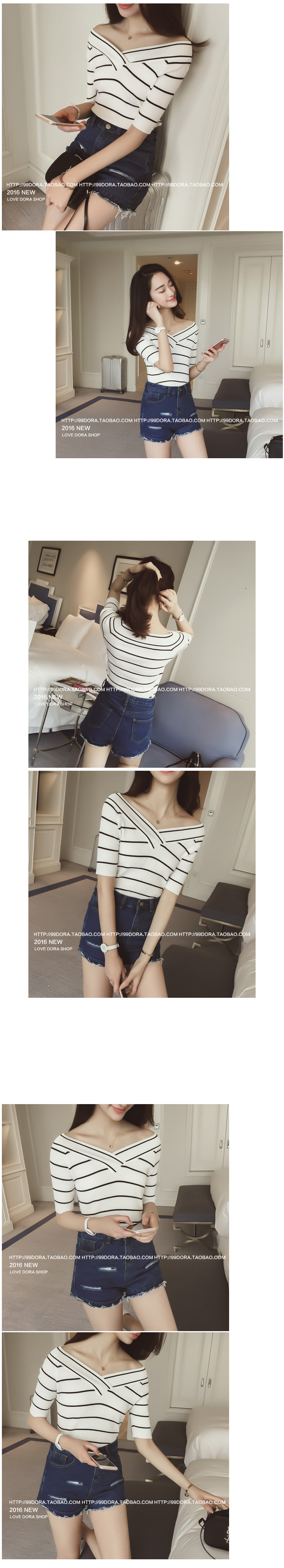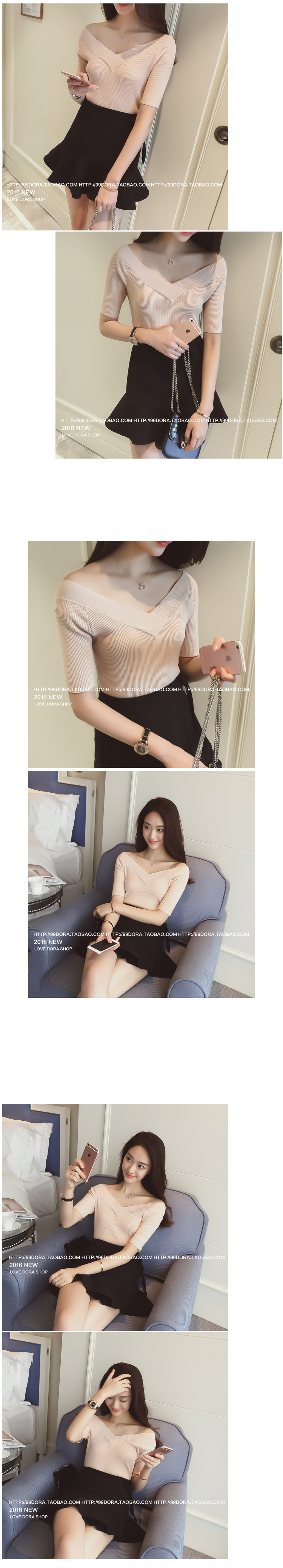 2016夏裝新款韓版 百搭針織短袖打底衫V領針織衫女潮